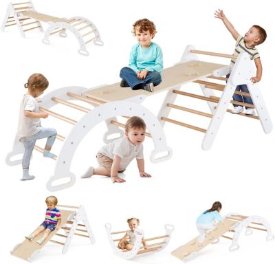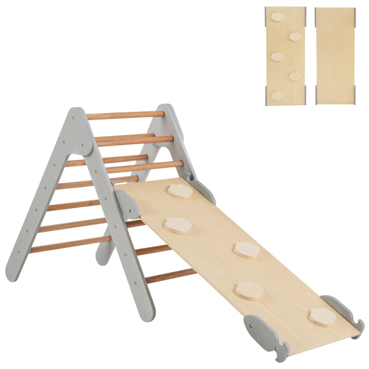 Grimpez, glissez, dessinez sur le tableau noir - un ensemble de triangle d'escalade qui stimule la créativité, la motricité et l'autonomie, tout en offrant un espace de jeu sûr et amusant. un ensemble de triangle d'escalade qui stimule la créativité, la motricité et l'autonomie, tout en offrant un espace de jeu sûr et amusant. Caractéristiques Fabriqué en bois massif avec une peinture sûre, offrant une tranquillité d'esprit totale aux parents AVENTURE MULTIPLE : Cet ensemble de jouets d'escalade 9 en 1 inclut une échelle d'escalade, un arc utilisable comme fauteuil à bascule, un toboggan réversible et un tableau noir, stimulant l'imaginaire de votre enfant et métamorphosant toute pièce en aire de jeux aventureuse CADEAU ORIENTÉ VERS LA CROISSANCE : Spécialement conçu pour les petits de 18 à 48 mois, ce jouet d'escalade encourage le développement physique autonome et les aptitudes cognitives, représentant ainsi un cadeau idéal à partager quotidiennement entre enfants et parents Triangle Pikler Multifonction Charge 50kg Triangle D'escalade - AIYAPLAY - 3 En 1 En Bois Pour Grimper Et Glisser - Charge Max. 50 Kg, Pour Enfants 18-48 Mois - Bois Naturel - Jeux - Jouets Motricité Bébé Favorise le développement des compétences motrices, ce qui en fait un excellent cadeau pour les tout-petits en croissance MATÉRIAUX SÉCURISÉS : Conçu à partir de bois robuste et de panneaux multicouches résistants supportant jusqu'à 50 kg, ce cadre d'escalade pour enfants avec ses barreaux arrondis, sa surface sans échardes et ses bords doux assure une sécurité optimale durant les jeux en famille PLAISIR AU TABLEAU NOIR : Un tableau noir amovible favorise le dessin créatif et l'apprentissage, contribuant au développement des compétences motrices fines et de la créativité de votre enfant dans un environnement domestique ludique et stimulant Transforme votre salle de jeux en un parc d'aventures, suscitant des heures de plaisir imaginatif 3 En 1 Toboggan D'escalade Montessori Pour Enfants, 2 Triangle D'Escalade Avec Toboggan Pour Enfant 3 Ans Charge 60kg Multicolore 95084085 Montage nécessaire 1 heure Caractéristiques: · - Conception 5 en 1, un triangle à grimper, un arc à grimper, un arc à bascule, une rampe d'escalade et un toboggan · - Construction en bois...
