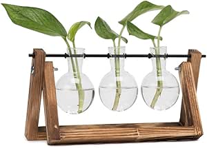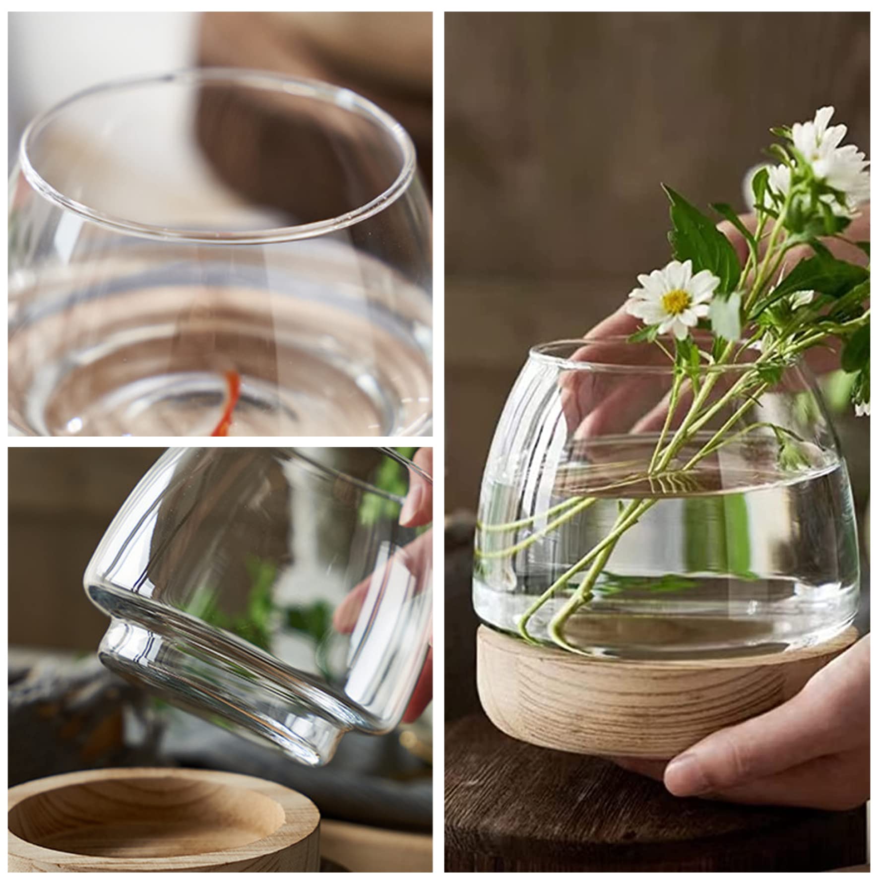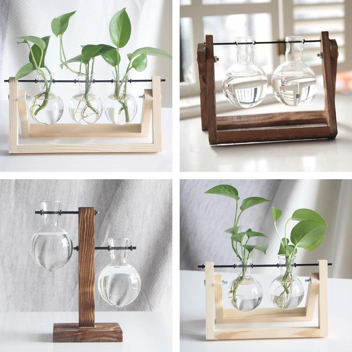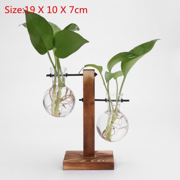 Vase Hydroponique, Vase Transparent Avec Base En Bois, Vase Hydroponique En Verre, Aquarium Pour Centre De Table