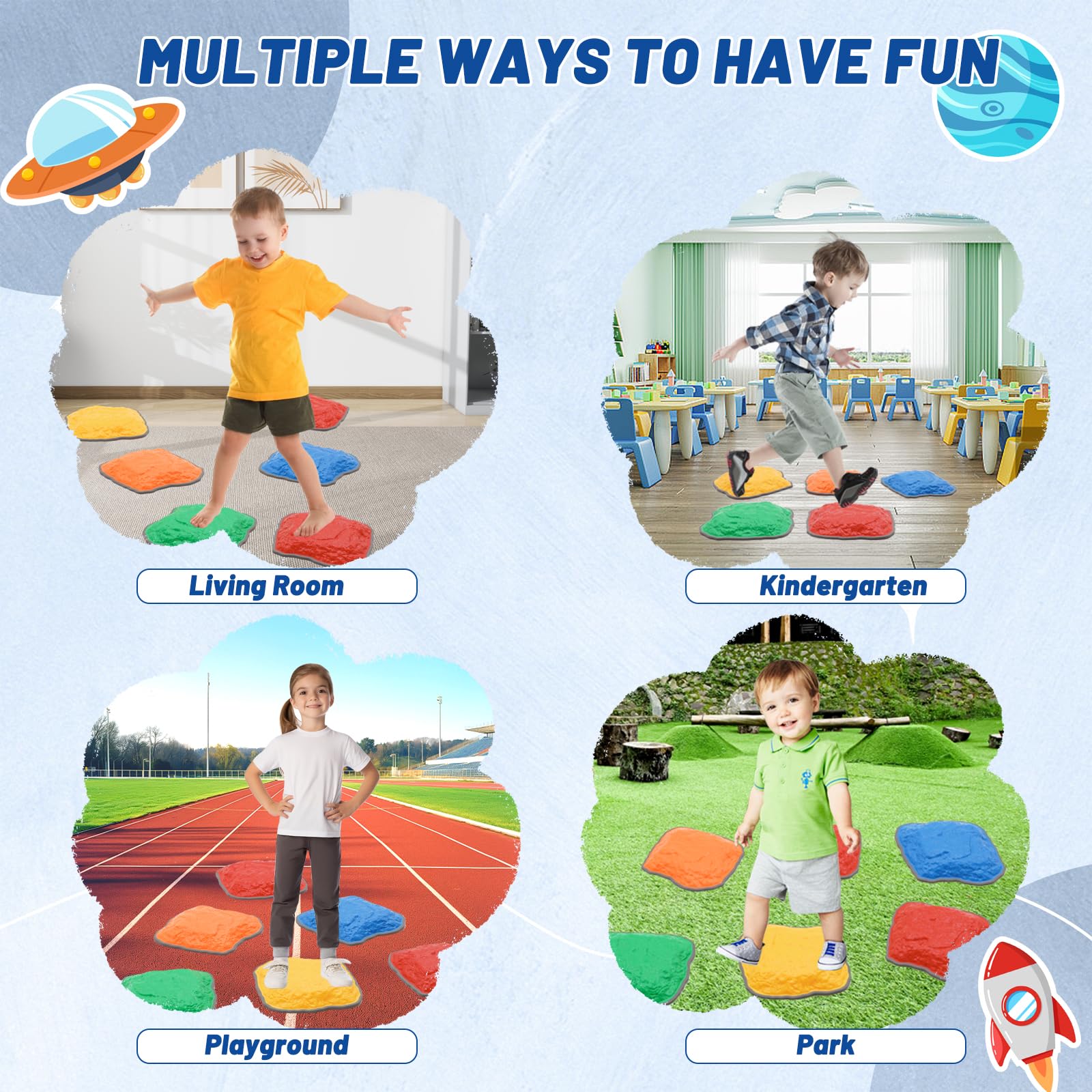【Lumière et son interactifs】Notre set de pierres de motricité comprend six pièces, disponibles en quatre couleurs : rouge, bleu, vert et gris. Pierre d'équilibre pour enfants]Les tout-petits et les enfants peuvent développer leur équilibre, leur coordination corporelle et leurs capacités motrices en marchant, se tenant debout, sautant ou grimpant sur ces pierres d'équilibre Lorsque vous marchez dessus, les pierres s’illuminent et émettent des cris de dinosaures ! Le design coloré stimule l'imagination des enfants et fait de ces pierres leur jouet préféré C’est le cadeau parfait pour les enfants Parcours Motricité Dinosaure Interactif COSTWAY 6 Pierres D'Equilibre Empilables Antidérapantes Pour Enfants, Parcours Motricité Bébé Jeux Intérieur Et Extérieur Pour - Sport Pierres équilibre Enfants Cela rend le jeu encore plus amusant, surtout le soir ou en intérieur. 【Cadeau idéal pour les enfants】Ces pierres sensoriels peuvent être utilisées aussi bien dans le jardin ou sur la pelouse qu’à l’intérieur sur un tapis. En tant que jouet sensoriel, elles aident les enfants à développer leur équilibre, leur coordination et leur reconnaissance des couleurs, favorisant ainsi leur développement global. Les lumières et les sons créent une atmosphère magique que les enfants adoreront Parcours Motricité Enfant Pierres Équilibre Enfants - Parcours Motricité 5 Pièces - 3-6 Ans Parcours Enfant Exterieur 【Conception antidérapante et sécurisée】Chaque pierre d'équilibre est munie d'un coussin antidérapant à sa base afin que les enfants ne glissent pas facilement lorsqu'ils l'utilisent. LZQ Poutre d'équilibre en bois avec 6 pierres d'équilibre pour enfants...