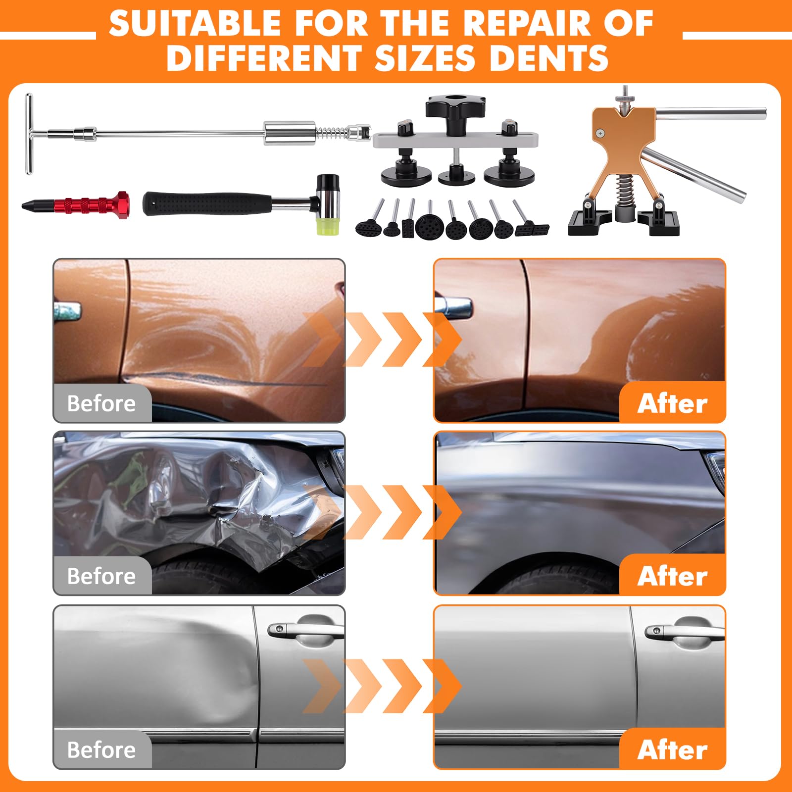Kit d'extraction de Bosses pour Voiture 78 Pièces Vidéo de marchand Pratique et utile]: Le kit d'extraction de bosses de voiture permet d'économiser du temps et des efforts pour les travaux d'entretien de votre voiture, vous aidant à retirer facilement les bosses de la carrosserie automobile Jeu d'outils complet : notre kit de débosselage comprenant 78 pièces au total est un kit complet de réparation de carrosserie à monter soi-même. Selon la taille de la bosse, différentes tailles de tiges de débosselage peuvent être sélectionnées. Que vous soyez débutant ou professionnel, vous pouvez facilement effectuer les travaux de réparation des bosses de votre voiture Debosselage Carrosserie Extracteur De Bosses Pour Voiture, Kit De Réparation De Bosses Sans Polish Voiture Rayure L'outil de débosselage pour voiture retire les bosses à l'aide d'une colle chaude très adhésive, qui peut être entièrement retirée sans endommager la peinture Non seulement elles n'endommagent pas la peinture d'origine, mais elles peuvent également être utilisées de manière répétée pendant longtemps Nos outils de réparation de bosses de voiture peuvent éliminer 99 % des bosses de votre voiture en 30 minutes. Largement utilisé : le kit d'outils de réparation de bosses sans peinture permet d'extraire les bosses de différentes formes et tailles. Débosselage Sans Peinture Kit Débosselage Carrosserie 50 Pièces - Réparation Sans Peinture, Outils Professionnels Réparation Grêle Automobile Élimine efficacement les bosses sur les voitures, les réfrigérateurs, les machines à laver et autres surfaces métalliques Nos outils de réparation de bosses de voiture peuvent enlever 99 % des bosses de votre voiture en 30 minutes. Que vous soyez un débutant ou un professionnel, vous pouvez facilement terminer les travaux de réparation de bosses de voiture Voir plus de détails Signaler un problème avec ce produit