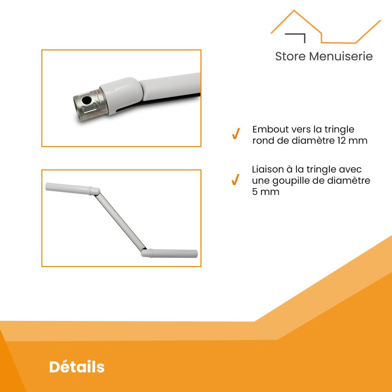 Sa conception inclut une extrémité femelle de 12 mm de diamètre, parfaitement adaptée au raccordement avec le tube de manivelle pour une installation simple et efficace. Elle est accompagnée d'une goupille de liaison de 5 mm de diamètre et dispose d'un bras supérieur amovible. Nos qualités Dépannage simple et rapide Manivelle adaptée au montage sur la tringle de manoeuvre en tube 12, qui s'insère dedans,fixée par la goupille fournie afin d'assurer une parfaite liaison... Elle est exclusivement destinée au remplacement d'un bras de manivelle rond. Fabrication Européenne CE Que ce soit pour un usage résidentiel ou professionnel, cette poignée offre une prise en main ergonomique, idéale pour un confort d’utilisation au quotidien. Cette pièce est idéale pour remplacer un bras de manivelle défectueux ou usé, offrant une solution fiable pour vos volets roulants manuels ou motorisés avec manœuvre de secours. Son installation est simplifiée grâce à une fixation par goupille, garantissant un montage rapide Conçue pour offrir une prise en main ergonomique, elle assure une installation facile et une utilisation fiable. Votre Manivelle de Volet Dysfonctionne ? N'hésitez pas à changer votre manivelle Cette poignée de manivelle est spécifiquement conçue pour s'adapter parfaitement aux tubes de manivelle Zurfluh-Feller, modèles ZE104, ZE107 et ZE119., Grâce à sa conception robuste et son ajustement précis, elle garantit une installation facile et un maintien sécurisé. Fourniture de condensateurs : Nous proposons une sélection variée de condensateurs provenant de marques reconnues comme MIFLEX, MECO, DUCATI ENERGIA. Notre expertise et notre passion pour l'excellence nous permettent d'offrir des solutions innovantes et fiables à nos clients. 🛠️ Cette poignée de manivelle blanche, conçue pour les tringles de 12 mm, intègre un système de fixation par tenon et une goupille de 5 mm dissimulée pour une finition soignée. Sa compatibilité avec ces modèles de tubes en fait une solution polyvalente et fiable pour tous vos besoins en manœuvre de volets roulants. Un gage de qualité La poignée de manivelle pour volet roulant est un produit phare du catalogue Zurfluh-Feller. Manivelle de volet roulant Réf. T1230B - Servistores Sud La liaison avec le tube de manivelle s'effectue à l'aide d'une goupille de 5 mm (fournie), discrètement dissimulée sous la poignée supérieure, qui se clipse solidement sur la bague de frottement Adaptée aux Tubes ZE107 et ZE119 Description du produit Poignée de Manivelle 12mm Blanche Essentielle au fonctionnement des volets roulants, elle transmet efficacement le mouvement jusqu'au treuil et à l'axe via la rotule d’articulation Expédition le jours même Manivelle Store Zurfluh-Feller Manivelle Complète Blanche - Pour Volet Roulant - Longueur 1000 Mm - Blanc - Diamètre 12 Mm - Kit Manivelle Barre Et Poignée - Geiger - Fabrication Allemagne - Fenêtre Avec Volet Roulant Manuel Poignée De Manivelle Volet Roulant Pièce de rechange de haute qualité Sa conception robuste garantit une manœuvre fluide et un maintien sécurisé, en s’adaptant parfaitement aux dimensions du tube de manivelle. Que vous ayez besoin de condensateurs ou de moteurs pour vos volets roulants, nous avons une gamme complète de produits de différentes marques pour répondre à vos besoins.