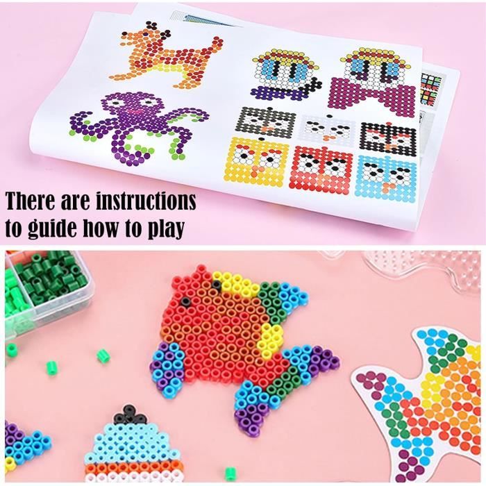 Assortiment de perles à repasser | Loisirs créatifs VBS Service Hobby Activité Manuelle Enfant Kit Créatif Enfants 10 Plaques Perles à Repasser KOIROI + Pincettes - Création Manuelle Enfants Kit Création Manuelle Plaque Perles à Repasser Cadeau parfait : Le tableau de perles thermocollantes est le cadeau parfait, un incontournable pour les amateurs de perles à perforer et idéal pour la famille ou les amis pour les anniversaires, Noël et Pâques Ensemble de planches à repasser à perles : comprend 10 formes et tailles différentes de planches à repasser de haute qualité, 2 pinces. Haute qualité : les plaques à repasser pour perles sont fabriquées en plastique de haute qualité, ce qui garantit une durabilité et un repassage facile et convient à tous les types d'artisanat Un loisir créatif pour les enfants dès l'âge de 5 ans. Contenu : environ 4000 perles en plastique, 2 plaques, 2 joyaux, une feuille de modèles en couleur, une feuille d'instructions et du papier à repasser.Diamètre des perles : 0,5 cm Les parents doivent les accompagner pendant le repassage Pour Noël, place aux perles à repasser en forme de Père-Noël, de fées, ou de sapin. A Pâques, ça sera des figures en forme de lapin, avec pour queue des pompons Bricolage : Ce grand ensemble de panneaux de perles favorise la créativité et l'imagination des enfants. Les différentes formes peuvent être adaptées à vos différents besoins