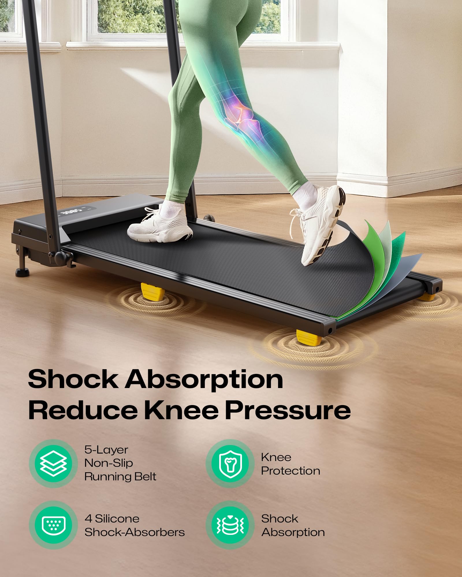 🏔【Pente réglable + Mode HIIT】:Inclinaison réglable de 0 à 9 %, permet de passer facilement au mode HIIT pour simuler une montée réelle. Le tapis de course est parfait pour une utilisation sous votre bureau, et est livré avec une télécommande avec une fonction mute à une touche pour des ajustements faciles Aide à brûler les graisses plus efficacement, à améliorer l’endurance cardiovasculaire et musculaire, sans aucun équipement supplémentaire. 🛡【Amorti confortable, protection des articulations】:Bande de course antidérapante avec motif diamant + système d’amortissement à 6 points en silicone, soulage efficacement la pression sur les genoux et les chevilles. Garantie 1 an et service client de qualité pour une tranquillité d’esprit totale Tapis De Course Pliable UREVO Avec APP,3 En 1 Tapis De Marche électrique 1-10 Km/h,Double Amortissement,avec Affichage LED Et Télécommande Walking Pad Pliable Pour Bureau Et Maison Tapis De Marche Bureau Commencez immédiatement un entraînement personnalisé., ⚡【Puissance optimale, fonctionnement silencieux】:Moteur intégré de 2,5 HP, fonctionnement stable et silencieux. Le système de refroidissement assure une performance constante même à la vitesse maximale (10 km/h), évitant la surchauffe et les vibrations, parfait pour un usage domestique ou au bureau 🔄【Design 3-en-1 multifonction】:Peut être utilisé comme tapis de marche sous le bureau (1–10 km/h) pour bouger tout en travaillant ; en levant les poignées, il se transforme en tapis de course (jusqu’à 10 km/h / 6,2 mph), adapté à tous les membres de la famille. Tapis de course - UREVO - Spacewalk Lite - Pliable - Absorbeur de chocs - Télécommande - Sport Design pliable + roulettes pour un rangement facile et un gain de place 🛡【Amorti confortable, protection des articulations】 Bande de course antidérapante avec motif diamant + système d’amortissement à 6 points en silicone, soulage efficacement la pression sur les genoux et les chevilles. Avec une vitesse ajustable de 1 à 10 km/h, un affichage LED intuitif et une télécommande pratique, il s’adapte à vos besoins et à votre espace, tout en vous permettant de suivre vos performances via une application dédiée