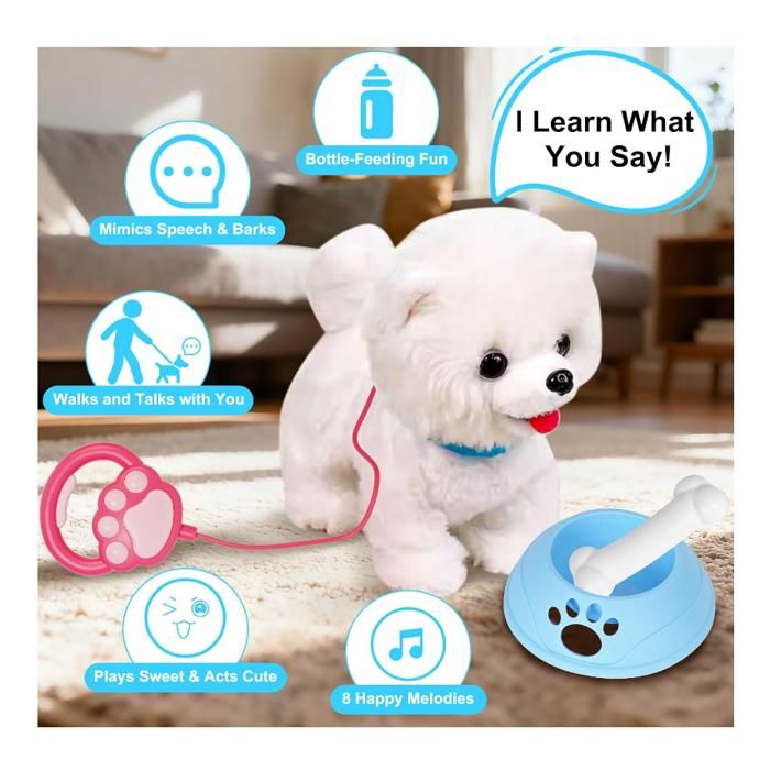 🎁 CADEAU PARFAIT POUR ENFANTS - Idéal pour Noël, anniversaires ou découverte des animaux. Jouet électronique interactif pour enfants, cadeau de noël, animaux de compagnie, Robot, chien 22.07 pour Chien robot mon chiot robot réaliste jouet interactif pour chiot qui marche aboie remue la queue animal de compagnie en peluche pour enfants et adultes jouet robotique réaliste qui agit comme un vrai de 2026. Vous cherchez des Animaux en Peluche ? petit prix en ligne ? Achetez-les en solde sur aujourd'hui 🧠 DÉVELOPPEMENT ÉMOTIF - Stimule l'empathie et la responsabilité chez les enfants de 3-7 ans grâce aux soins virtuels (nourrir, nommer, jouer). 🎮 TÉLÉCOMMANDE & DÉTECTION VOCALE - Contrôlez les mouvements via la laisse ou par commande vocale (claquement). YH YUHUNG, Jouet Chien Qui Marche, Peluche Interactive, Marche, Abo... Conçu pour les petites mains et sans risque d'allergie (normes jouets UE). 🐕 CHIEN INTERACTIF RÉALISTE - Le chiot électronique de 23 cm court, aboie et remue la queue Comprend 1 chien en peluche, 1 laisse de contrôle à distance, 1 gamelle, 1 balle de jeu, 1 os en caoutchouc, 1 collier réglable et 1 paire de lunettes de soleil cool pour les jeux de rôle créatifs. Jouet électronique Chien Robot Chien Jouet Interactif OR OR TU - Marche, Aboie, Remue La Queue | Peluche Électronique Avec Laisse Télécommande Pour Enfants 3-7 Ans Chien Robot Realiste Chien Robot Interactif