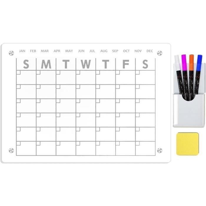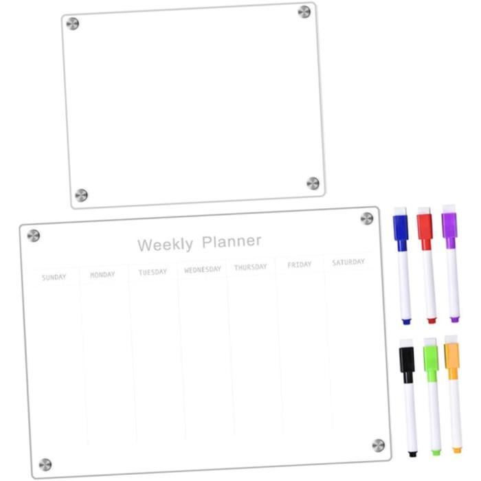 AMUSIGHT Grand tableau blanc en acrylique transparent effaçable à sec, 61 x 40,6 cm, doré, non magnétique, sans cadre, pour mur, maison, bureau, école, 2 marqueurs Acrylique Transparent Effaçable STOBOK Tableau Effaçable à Sec Magnétique Pour Réfrigérateur Planification Hebdomadaire Et Quotidienne Calendrier Magnétique Le tableau effaçable à sec magnétique en acrylique est facile à utiliser, ne nécessite aucune installation et peut être fermement fixé aux réfrigérateurs à diverses surfaces métalliques avec une adhérence très forte. Description du produit le forfait comprend un ensemble de tableau d'écriture de message clair effaçable en acrylique planificateur hebdomadaire, comprenant 1 tableau d'écriture, 4 clous et 1 stylo effaçable, qui peut vous aider à suivre les tâches et les projets, et vous aider à améliorer votre efficacité à faire les choses. calendrier acrylique magnétique acrylique pour réfrigérateur mesure environ 29,70x21,00x1,00 cm/11,67x8,25x0,39 pouces, ne prend pas de place, peut être facilement démonté, très pratique et pratique. Petits tableaux effaçables à sec : ce tableau effaçable à sec pratique et multi-usage peut organiser votre emploi du temps efficacement dans votre vie bien remplie, calendrier magnétique pour réfrigérateur Le tableau effaçable à sec transparentpour réfrigérateur est fabriqué en matériau acrylique transparent, durable et résistant aux rayures et aux cassures, il est facile à effacer sans laisser de traces ni de fantômes. Vierge en acrylique : les mémos sont magnétiques et peuvent être fixés magnétiquement aux portes de réfrigérateur ordinaires, s en fer, parfait pour offrir.Tableau vierge effaçable à sec : la finition soignée et les matériaux robustes garantissent praticité et durabilité Mode d'emploi keep clean Le tableau effaçable à sec magnétique en acryliqueest facile à utiliser, ne nécessite aucune installation et peut être fermement fixé aux réfrigérateurs à diverses surfaces métalliques avec une très forte adhérence.