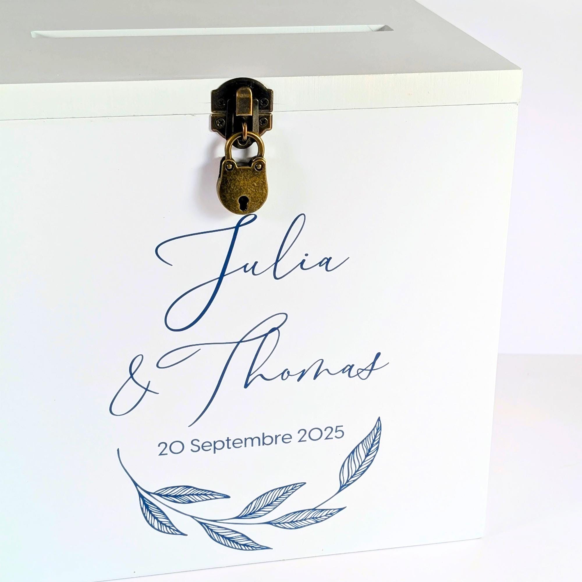 Son design sobre et contemporain s'intègre parfaitement dans une décoration de mariage champêtre, vintage ou maritime. L'inscription élégante 'Un Grand Merci' est délicatement imprimée en bleu marine sur deux faces, apportant une note de gratitude raffinée. Cette urne élégante peut également être utilisée pour d'autres célébrations spéciales. Ensemble urne livre d'or stylo mariage turquoise et blanc cœur DESIGN ÉLÉGANT: Urne de mariage bicolore en bleu orage avec couvercle bleu marine, ornée d'une belle inscription 'Un Grand Merci' sur deux faces Avec la mention "Un Grand Merci" marquée en marine, cette urne bicolore bleu orage bleu marine conviendra parfaitement pour un thème mariage champêtre, vintage ou mer. Cette urne merci bleu marine bleu orage permettra à vos invités de déposer dans la fente leur participation Urne Anniversaire Urne En Carton Tropical Merci Ivoire Avec Dorure Livre Jaune Urne Communion Merci 21x25 cm avec ruban. En stock. 10.99 €. Urne Baptême Merci 21x25 cm avec ruban. heart. Urne Baptême Merci 21x25 cm avec ruban