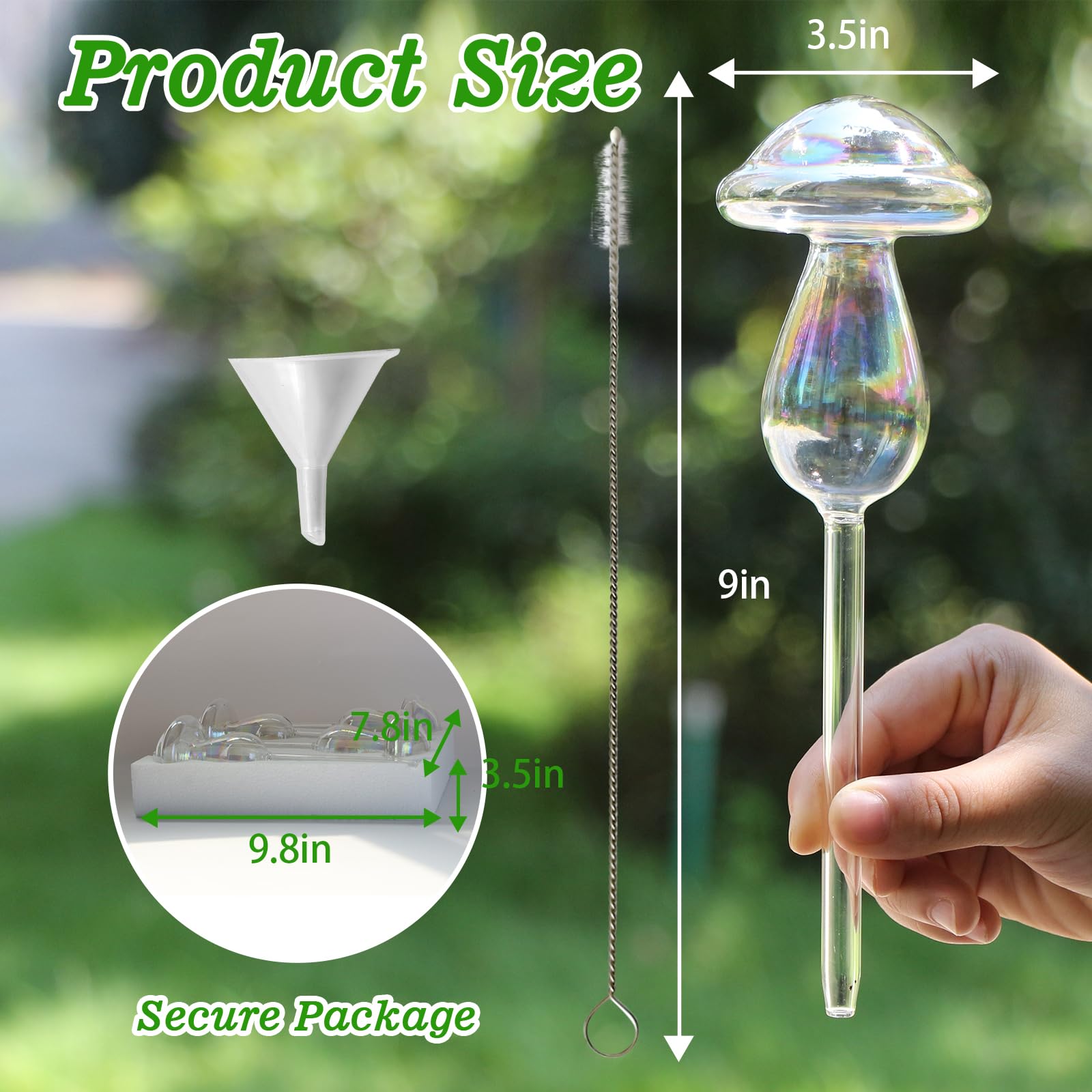 Qualité supérieure : les globes en verre soufflé à la main permettent à votre plante d'absorber suffisamment d'eau selon les besoins. Bon entretien des plantes : les globes d'arrosage de jardin administrent une dose constante d'eau qui est absorbée lorsque le sol se dessèche. Facile à utiliser : remplissez le globe d'eau jusqu'à environ 80 %. 4 PCS] Système d'arrosage automatique en verre transparent irisé ⚠️ Veuillez toujours manipuler les ampoules en verre avec soin. Ensemble de 4 globes d'arrosage pour plantes, couleur dégradée irisée arc-en-ciel, champignons transparents, dispositifs d'arrosage automatique pour plantes d'intérieur et d'extérieur, mesurant 9" de longueur sur 2,7" de diamètre Globe Souffle Main Pour Jardin Interieur 2 Pièces] Système D'arrosage Automatique En Verre Transparent Irisé Dégradé De Couleur Arc-en-ciel Système Irrigation Plantes Intérieur YYBD Lot de 4 globes d'arrosage de plantes irisés arc-en-ciel dégradé de couleur transparente en verre transparent pour plantes d'intérieur et d'extérieur : : Terrasse et JardinContenu de l'emballage : vous recevrez 4 ampoules d'arrosage irisées qui mesurent environ 22,9 x 6,8 cm. Une grande quantité et une taille appropriée vous permettent d'insérer ces ampoules d'arrosage...
