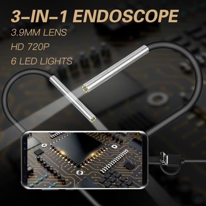 Il dispose d'une sonde de 7,9 mm qui est compacte et portable et peut facilement examiner les endroits difficiles d'accès. Principaux points forts · Plage de mise au point macro. 1-10 cm · Modes de prise de vue. Automatique, Macro, Night, Subaquea · Type de contrôle d'exposition Grâce à sa conception étanche IP67, la caméra endoscopique iPhone peut fonctionner sous l'eau pendant 1 heure et atteint une profondeur allant jusqu'à 1 m Il est recommandé d'installer l'application « USB OTG Checker » avant l'achat pour vérifier OTG. Nous offrons une garantie de 12 mois Camera Endoscopique Iphone Ennovor Camera Endoscopique 1920 HD Avec 8 Lumiu00e8res LED Camu00e9ra D'inspection De Serpent, 3 En 1 USB Camu00e9ra Endoscopique Pour Smartphone Android Et IOS, IPhone, IPad, Samsung (16,5 FT/5 Facile à utiliser : la caméra télescopique ne nécessite pas de connexion Bluetooth ou Wi-Fi. Il suffit de brancher l'iPhone et de commencer à l'utiliser Contenu : 1 caméra endoscopique, 1 câble semi-rigide de 5 m, accessoires : 1 aimant, 1 crochet, 1 miroir, 1 dispositif de fixation, 1 manuel (français non garanti). Il suffit de brancher l'appareil et de profiter de l'écran de détection stable en temps réel. CAMÉRA D'INSPECTION ENDOSCOPIQUE Usb Type C 3 En 1 Pour Téléphone Connectez la caméra Scope à votre smartphone ou tablette et avec des opérations simples, vous pouvez afficher des images en direct sur l'écran Caera Endoscopique WiFi, Caera Canalisation HD 1944P, Caéras d...
