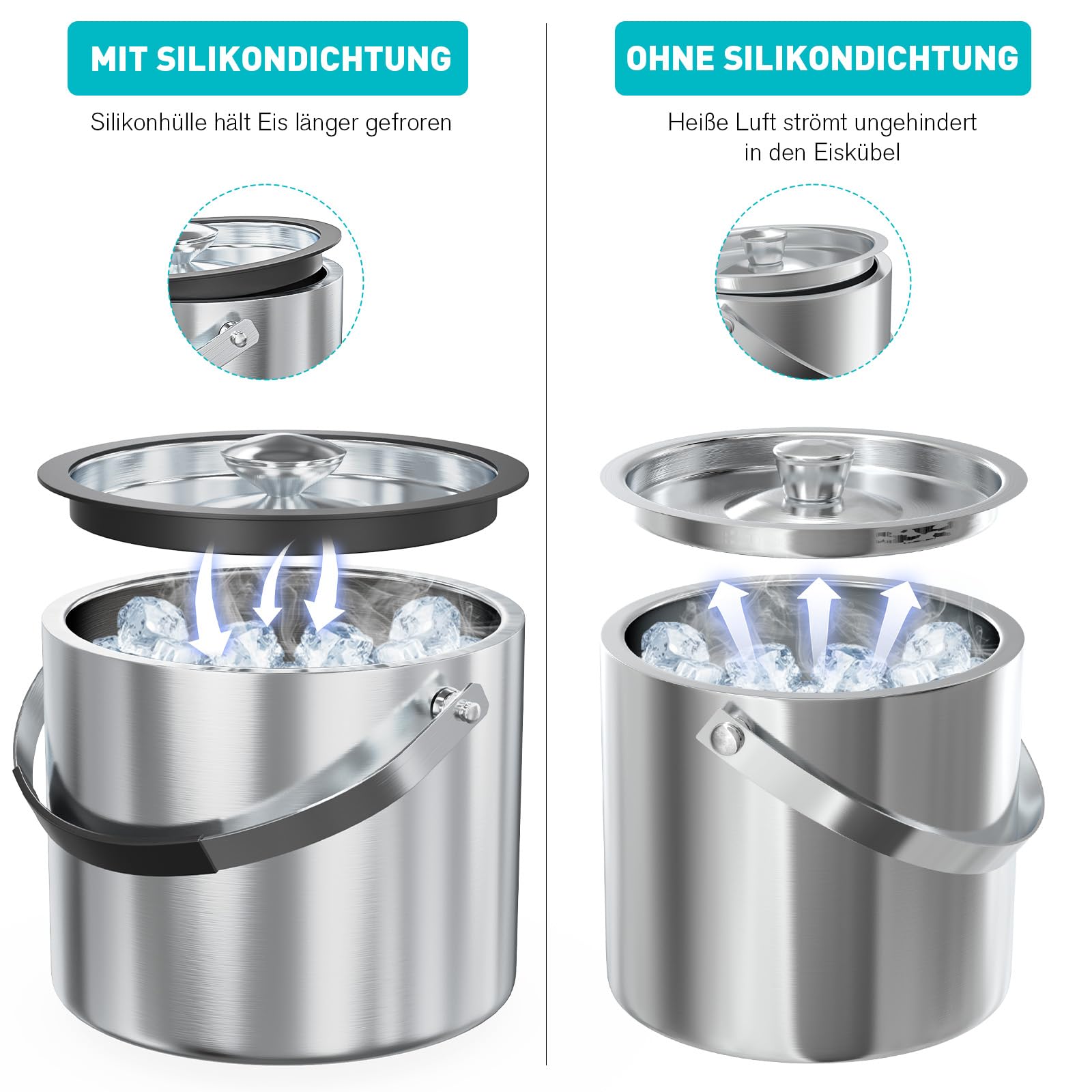 Seau A Glacon 3L Seau Glacon Acier Inoxydable Avec Couvercle Isotherme & Pince Glace, Récipient Glaçons Isolé Paroi Double, Rafraîchisseur Champagne Pour Bouteille Bar, Fêtes, Pique Niques, Barbecues, Boisson Seau Glacon Isotherme Utilisation sûre : le seau à glace est fabriqué en acier inoxydable 304, qui ne libère pas de substances nocives et de gaz, ce qui vous rassure beaucoup. 【Bon effet de protection contre le froid】: Le couvercle du seau à glace avec couvercle et pince est bien fermé, et le corps à double paroi assure un excellent effet de stockage du froid. Caractéristiques : Matériau : acier inoxydable 304 double couche Diamètre x hauteur : 14 x 22,5 cm (5,5 x 8,85 pouces) Capacité : 1,3 l. Cela permet d'économiser du travail et facilite la manipulation. Ainsi, vous pouvez facilement l'emmener partout avec vous. Design portable : la poignée plus large et plus épaisse, combinée à la conception légère, rend le seau à glace avec couvercle et pince particulièrement portable. Cela permet d'économiser un espace de rangement précieux, ce qui rend l'utilisation encore plus pratique. Le couvercle est bien fermé et le corps est à double couche, de sorte qu'il a un bon effet de stockage du froid. UgyDuky Seau à glace de 1,3 l avec couvercle, pince à glace et passoire La grande capacité de 1,3 l peut contenir suffisamment de glace à la fois, ce qui est très pratique. Ensembles seau et pince à glaçons Seau à glace double paroi en acier... Épaisseur de la paroi : 1 cm (0,39 pouces) Poids : 820 g., Montage : 1., Le produit n'a pas besoin d'être installé., 2., Si vous avez des problèmes, n'hésitez pas à nous contacter. Caractéristiques importantes : Facile à nettoyer : sa surface lisse et polie miroir et son design monobloc le rend facile à nettoyer sans trop de temps. Même à une température ambiante de 26 °C, la glace à l'intérieur du récipient reste fraîche pendant environ 6 heures. Utilisation : Ce seau à glace portable est adapté pour les barbecues, les pique-niques, les fêtes, les fêtes dans la cour, les bars, les clubs, les restaurants, les cafés, les hôtels, les randonnées à la plage. Couvercle hermétique : le couvercle hermétique s'adapte étroitement au fût pour une meilleure étanchéité et une conservation durable du froid. Nous répondrons et résoudrons le problème pour vous dès que possible. Pour garder vos boissons bien fraîches, ce seau à glace ROYIYI est top ! La double paroi en acier inoxydable de 1,3L maintient la température longtemps Détails : Pince à glace intégrée : la pince à glace intégrée peut être insérée dans le couvercle lorsque vous ne l'utilisez pas, de sorte que vous n'avez pas à vous soucier de la perdre pour tirer le meilleur parti de la pince à glace intégrée. Cela le rend particulièrement durable et robuste, ce qui lui confère une longue durée de vie.