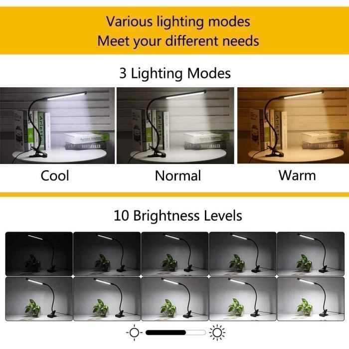 Lampe De Bureau Enfant Lampe De Bureau LED Dimmable EMOBACO Double Tête Lere Bureau 5 Niveaux De Lnosité 5 Modes De Lampe Architecte Parfaite comme lampe écran PC ou lampe bureau. tectake Lampadaire Auralis LED 20W avec lampe de lecture dimmable, Noir... Lustaled Lampe de Bureau LED Pince, Double Tête Lampe Lecture 2000LM 20W Dimmable, 3 Couleurs & 10 Luminosités, Protection des Yeux, Noir Lampe Pince avec Prise pour Ecran PC, Architecte, Dessin [Classe énergétique B La fonction mémoire retient votre dernier réglage. Cette liseuse lampe à pince est l'assistante polyvalente pour le bureau à domicile, l'atelier et les loisirs créatifs. Lampe De Lecture à Pince, Lampe De Bureau LED USB, Lumière En Le câble d'alimentation de 92 cm offre une grande flexibilité de placement. 1 LED 20W Lumineuse 2 ICR 90 3 Sans Scintillement [ Positionnement Personnalisé et Maintien Stable ]: Le bras métallique pliable à deux sections permet une hauteur maximale de 78,5 cm pour un éclairage optimal. [ 3 Températures de Couleur & 10 Niveaux de Luminosité avec Mémoire ]: Choisissez entre 3000K (Blanc Chaud), 4000K (Blanc Neutre) et 6000K (Blanc Lumière du Jour) et réglez la luminosité sur 10 niveaux. La robuste lampe à pince en aluminium, avec une ouverture maximale de 5,3 cm et un revêtement antidérapant, garantit une fixation ferme sur les tables et plans de travail. L'unité de contrôle séparée à 4 boutons (MAR/ARR, Luminosité +/-, Température de Couleur) est toujours à portée de main. Cette lampe de bureau à lumière du jour s'adapte à toutes vos humeurs et activités – pour la concentration lors des études ou la détente. Combinez les éclairages selon vos besoins pour un rendu parfait et homogène sur toute votre surface de travail.