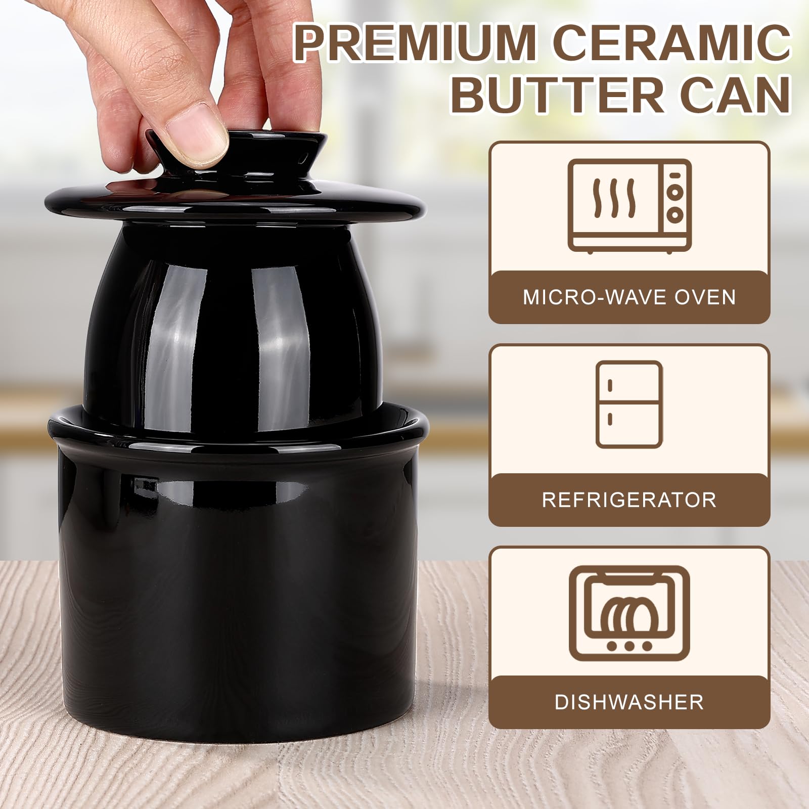 Le design intemporel correspond parfaitement à chaque installation et fait du beurre un cadeau idéal pour les amis et la famille qui apprécient le plaisir du beurre. Avec la boîte de beurre de MEXGCOM, le stockage du beurre devient un incontournable de l'enfant pour tous les amateurs de beurre! 【Facile à Utiliser et à Nettoyer】 Remplissez simplement la partie inférieure d'eau, remplissez soigneusement le beurre et mettez le couvercle - le beurre est protégé de manière optimale. 【Conceptions】 Grâce au design intelligent refroidi par l'eau, votre beurre reste toujours frais et doux. Commandez votre cloche de beurre dès aujourd'hui et ressentez les avantages d'une boîte de beurre de haute qualité en céramique. Matériau. Céramique · Couleur. Noir · Marque. Mexgcom · Capacité. 280 Grammes · Avec couvercle. Oui · Forme. Ronde Ancien beurrier à eau en grès Grès/Céramique L'eau crée une extrémité hermétique qui empêche le séchage. Il donne à chaque cuisine une touche de charme et d'élégance - un accessoire pratique avec une touche décorative Un court rinçage ou un passage dans le lave-vaisselle est suffisant pour le nettoyage, de sorte que l'hygiène et la fraîcheur sont garanties à tout moment. 280g de beurre - Cela correspond à environ 1,3 morceaux de beurre disponibles dans le commerce. Beurrier Design Vintage Garde Frais Beurrier à Eau Beurrier Français En Céramique Avec Couvercle Et à Beurrier Céramique Ce magnifique beurrier est en céramique sans plomb, un gage de sécurité pour les aliments. Une superbe innovation avec ce récipient et sa cloche, le beurre reste toujours frais, sans durcir, ni dessécher Offrez-vous le meilleur pour votre beurre - avec les canettes de beurre de MEXGCOM!, Le beurre français peut avec un capuchon d'eau innovant garantit que votre beurre reste frais jusqu'à 5 semaines. 【Taille Idéale pour une Utilisation Quotidienne】 Avec les dimensions de 9,5 cm x 10 cm, le beurre français peut faire d'espace en céramique pour environ. Découvrez les canettes de beurre de haute qualité de MEXGCOM - la combinaison parfaite d'élégance et de fonctionnalité! Dites au revoir au beurre sec et offrez-vous la version de luxe d'un baril de beurre avec notre canne de beurre français par Mexgcom. 【Perfect Comme idée Cadeau】 Ce beurre français peut en élégant est le cadeau idéal pour des occasions telles que Noël, les initiations ou les anniversaires.