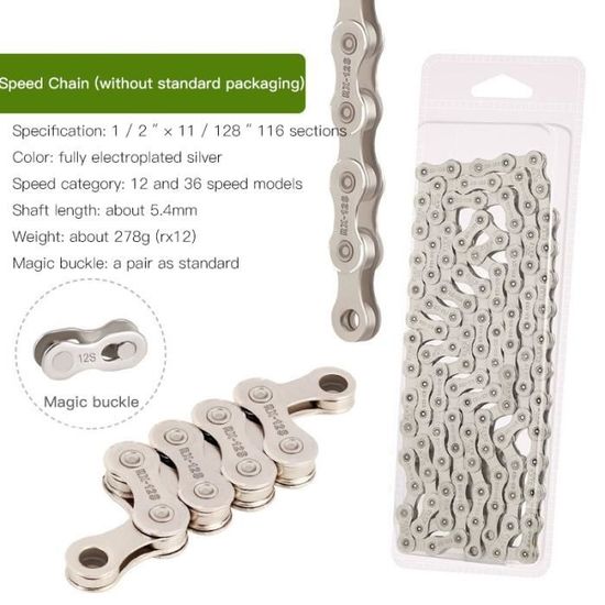 Sport - Découvrez notre offre Chaîne de vélo universelle pratique, chaîne de cycle, professionnel robuste 6-7-8 vitesses pour vélos de montagne 18, 21, 24 L'excellente finition garantit que la chaîne et les engrenages sont étroitement bloqués. Chaine Pour Vélo Chaîne Vuelta Pour Vélos à 9 Vitesses Rockrider 520 Caractéristiques : Le produit est fabriqué en acier de avec une bonne ténacité, une résistance à l'usure et une longue durée de vie. Contenu du paquet : 1 chaîne de vélo. Il peut y avoir une légère différence dans la mesure du produit. HEQISHUN 6-7-8 Vitesses Chaîne Vélo en 116 Maillon Chaîne Vélo VTT en... VINGVO Groupe volant 40T Groupe 10 vitesses 11 à 40T support inférieur Il est très approprié pour remplacer les chaînes anciennes ou endommagées sur les vélos. Caractéristiques : Modèle : IG51., Matériau : métal., Poids : 316 g. Il est adapté pour les vélos de montagne et de route à 18, 21, 24 vitesses.