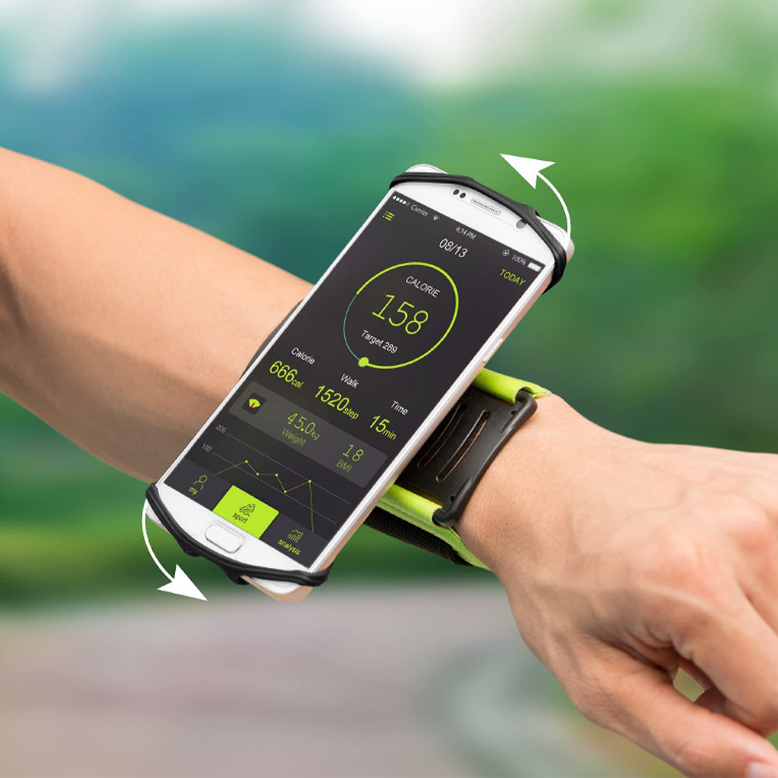 Avec une forte force magnétique, une sangle réglable et une couche de tissu supplémentaire pour la durabilité. Support de téléphone de course rotatif à 360° maintient votre téléphone dans toutes les directions pendant le jogging ou le vélo avec du silicone respirant et un accès rapide Fabriqué en nylon et ABS, parfait pour la course, l'exercice, la marche et le cyclisme. Support de téléphone rotatif : idéal pour les activités telles que la randonnée, le cyclisme, l'exécution et l'exercice Structure stable : avec une forte force magnétique, ce support de bracelet maintient une excellente prise en main sur différentes tailles de smartphones et garantit que votre téléphone portable ne vacille pas pendant l'utilisation. Brassard Téléphone Réglable Support De Téléphone Rotatif à 360 Degrés Pour Vélos Et Tapis Brassard Réglable Nylon Abs Gardez votre téléphone en sécurité pendant toute activité. Design : avec une sangle réglable, portable et conçue pour s'adapter à une variété de tailles de poignet, ce support de téléphone assure la sécurité de votre appareil Vous pouvez facilement le laver après les entraînements, assurant une bonne expérience. Caractéristiques : Nom : support de téléphone pour bracelet. AUTSUPPL Support de téléphone portable rotatif à 360° pour Dimensions du produit : environ 2,7 x 6,9 x 6,1 cm. Large application : pour les entraînements de gym vigoureux ou les activités de plein air telles que le cyclisme, la course, la randonnée, ce support de téléphone magnétique est à la hauteur de l'activité