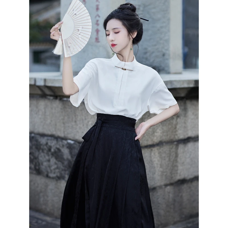 ● Costume de style chinois : Embrassez l'élégance de la Chine ancienne avec notre jupe Hanfu, fabriquée à partir de matériaux de haute qualité pour garantir confort et durabilité. Caractéristiques Matériel: Polyester, rayonne Genre : FEMMES Origine : Chine continentale Hanfu pour femmes : robe de danse sur scène Dégradé Bleu et Vert Vêtements de broderie traditionnelle chinoise Déguisement de cosplay adulte ● Jupe à visage de cheval : dotée d'un magnifique imprimé de visage de cheval, notre jupe est parfaite pour les événements de cosplay ou comme cadeau pour les fans de la culture chinoise. Hanfu de la dynastie Ming – HanWen Shop ● Disponible en bleu ou noir : choisissez parmi deux superbes options – bleu ou noir – pour correspondre à votre style personnel et à vos préférences. of traditional Chinese #costume, known as hanfu, as it embodies an impressive elegance and sophistication Jupe Hanfu Traditionnelle Jupe Hanfu "MaMian Qun" De La Dynastie Ming - Brodés Dorés Du Jupe Mamianqun Si vous êtes intéressé par les costumes culturels anciens orientaux, ce sera un bon choix pour vous. Style traditionnel : fabriquée avec la technologie d'impression traditionnelle chinoise, notre jupe présente un style chinois classique et intemporel. Il est parfait pour ceux qui veulent embrasser la culture chinoise dans leur garde-robe