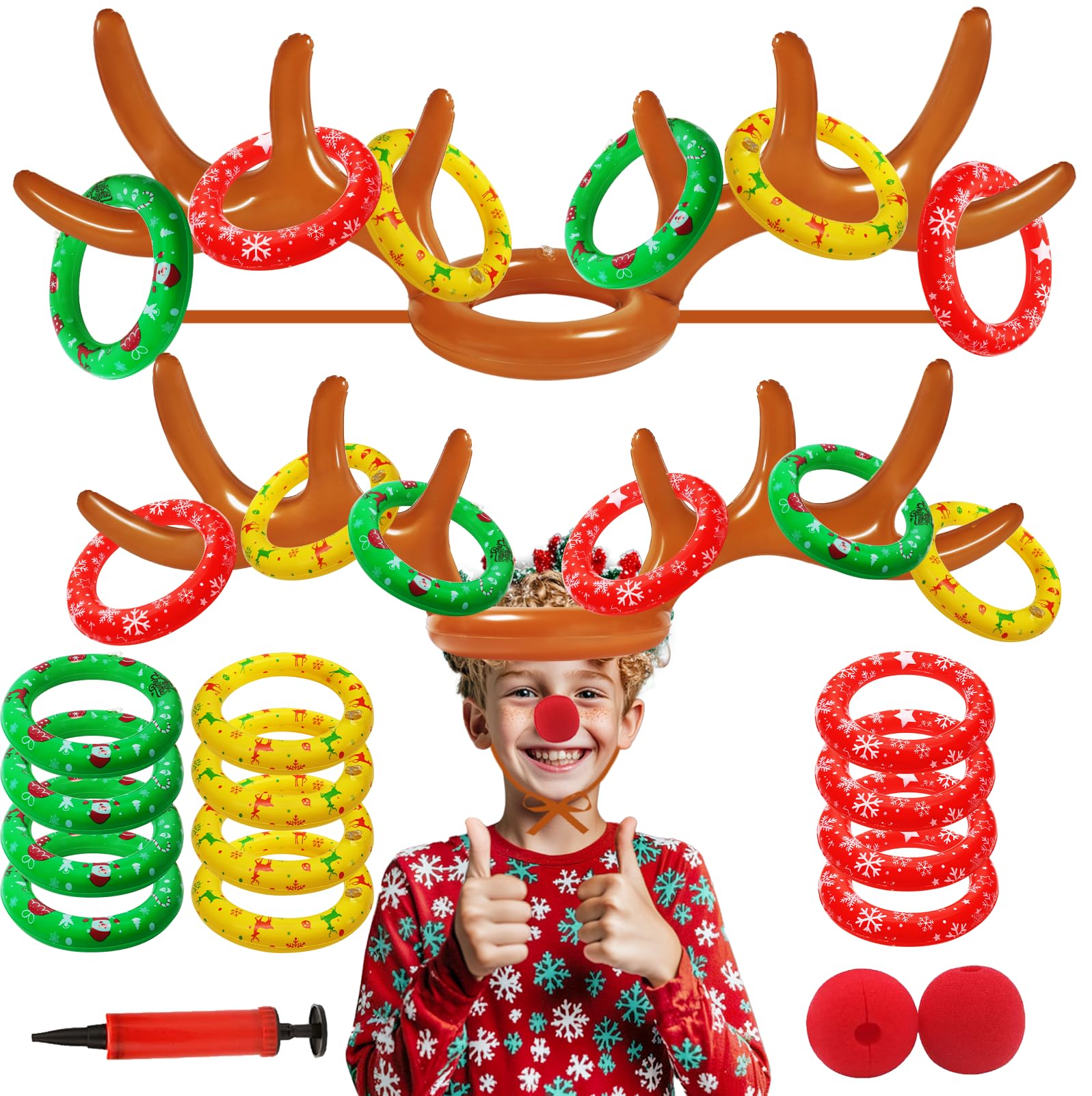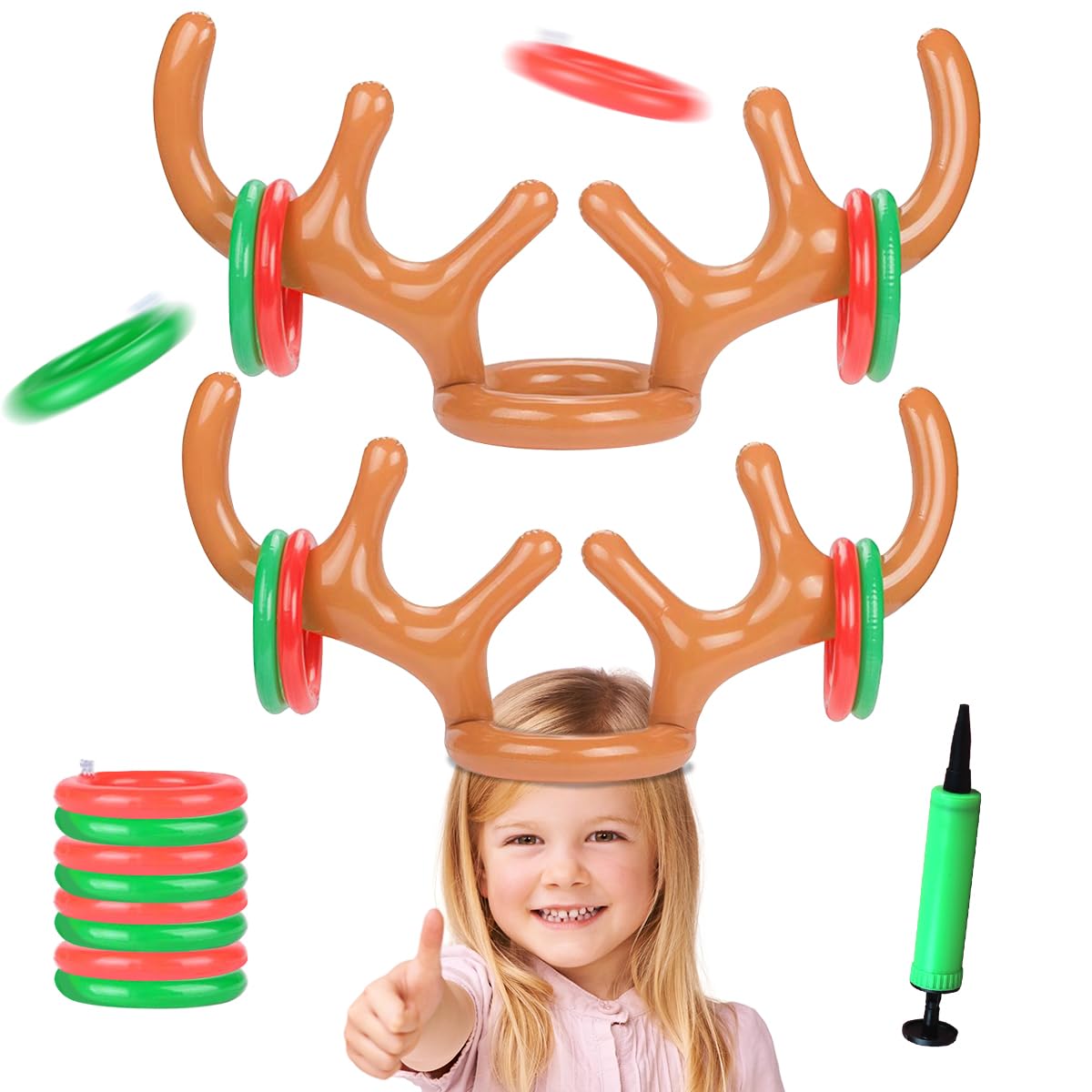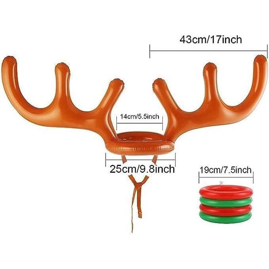 Ce jeux gonflables en forme de bois de renne est parfait pour les activités familiales de Noël dans le jardin, les anniversaires et autres activités de travail d'équipe. Jeu de lancers de cornes de renne gonflables]Le kit comprend : 2 cornes de renne gonflables, 8 anneaux (4 rouges 4 verts), 1 pompe à ballon manuelle Les joueurs lancent à tour de rôle le cercle sur les oreilles du renne, portent les oreilles du renne sur leur tête et font de l'anneau de lancer une cible mobile, et accrochent les bois sur le cercle. ✨【Kit de lancer】Contient 2 chapeaux de bois de renne gonflables et 8 anneaux à lancer (4 rouges, 4 verts) et 1 pompe à air (couleur aléatoire). ✨【Facile à Utiliser】Les joueurs lancent à tour de rôle le cercle sur les oreilles du renne, portent les oreilles du renne sur leur tête et font de l'anneau de lancer une cible mobile, et accrochent les bois sur le cercle. Jeu Famille Noël Jeu De Lancer D'Anneaux, Jeu De Lancer D'Anneaux Arbre De Noël, Jeu De Lancer D'Anneaux Visage De Père Noël Mignon, Avec 4 Anneaux Gonflables, Fournitures De Fête De Noël Pour Enfants Maison Animation Famille Noël Facile à gonfler et dégonfler les bois et les anneaux avec la pompe manuelle. Le jeu de lancer de bois de renne est très approprié pour Noël, les anniversaires et les fêtes de famille, etc. ✨【Matériau de Haute Qualité】Le Noël chapeaux gonflables en cerf est fabriqué en plastique PVC de haute qualité, respectueux de l'environnement, inoffensif pour la santé, durable et réutilisable. Emballage: 2 * Gonflable Renne Chapeau de Noël 1 * Gonfleur 8 * Anneaux Gonflables, Remarque: 1., Les jeunes doivent être appliqués sous la surveillance directe d'un adulte., 2., Ne pas trop gonfler ou tenir à l'écart de la chaleur, du feu ou des objets tranchants., 3., Il y a une petite odeur, mais ce n'est pas nocif pour la santé pour des raisons matérielles. Idéal pour jouer à l'intérieur et à l'extérieur et activer l'ambiance de la fête. Il disparaîtra si vous le posez pendant un certain temps., 4., En raison de la mesure manuelle, la taille peut avoir une erreur de 1 à 3 cm. Âge recommandé 3-12 ans : Convient aux enfants de 3 à 12 ans, ce jeu de renne gonflable est idéal pour les jeunes. · Taille 33,46 x 17,7 pouces:Dimensions...