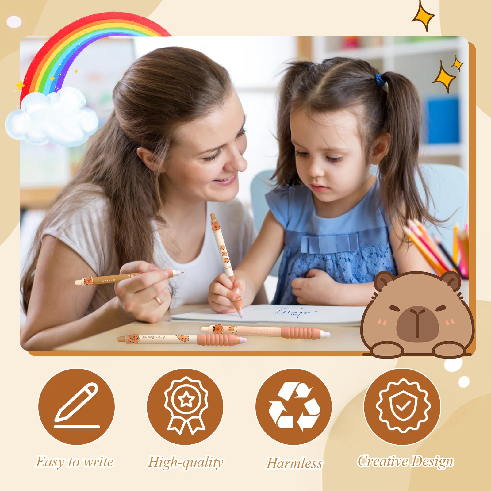 Contrairement aux gommes classiques, cette boule ne s'use pas, ne détériore pas la surface et efface parfaitement. Taxes locales incluses (si applicables), plus frais de livraison Lot de 6 Stylos à Encre Gel Effaçable Capybara OFFICEMARKET Créateur local Avec votre commande, vous soutenez une boutique proche de chez vous Idéal pour un usage quotidien, mais à éviter pour des documents officiels comme contrats ou examens Dimensions idéales : Avec une mine de 0,5 mm et une longueur de 14 cm, ce stylo gel effaçable est parfait pour une écriture fluide et précise. Conçu pour convenir aussi bien aux droitiers qu'aux gauchers, il offre une prise en main confortable et une expérience d'écriture agréable Les motifs de dessin animé attirent particulièrement les enfants et ajoutent une touche ludique à leur matériel scolaire, tout en restant fonctionnel et pratique Stylo Avec Gomme Intégrée Legami Stylo Lot De 4 Stylo Effacables - Stylo Kawaii Capybara -Avec Bille Sur L'extru00e9mitu00e9 Pour Effacer L'encre - Stylo Animaux Retractable Et Ergonomique - Bleu Pointe 0,5 Mm - Stylo Capybara Legami Gomme Idéal pour écrire longuement sans fatigue, il est parfait pour les enfants apprenant à écrire ou pour les adultes recherchant une écriture fluide et agréable Design amusant et unique : Ce stylo kawaii au design de capybara propose des capuchons avec 6 poses différentes. Confort et douceur : La zone de préhension en caoutchouc de ce stylo effaçable assure une tenue confortable et précise. Idéal pour écrire longuement sans fatigue, il est parfait pour les enfants apprenant à écrire ou pour les adultes recherchant une écriture fluide et agréable Idéal pour prendre des notes, faire ses devoirs, dessiner ou signer, il convient à une utilisation à l'école, au bureau ou à la maison 6 pièces/set Stylos gel effaçables au thème du Capybara, avec Idéal pour un usage quotidien, mais à éviter pour des documents officiels comme contrats ou examens Stylo À Bille Capybara ulticolore - 10 Couleurs Stylos Rétractables...