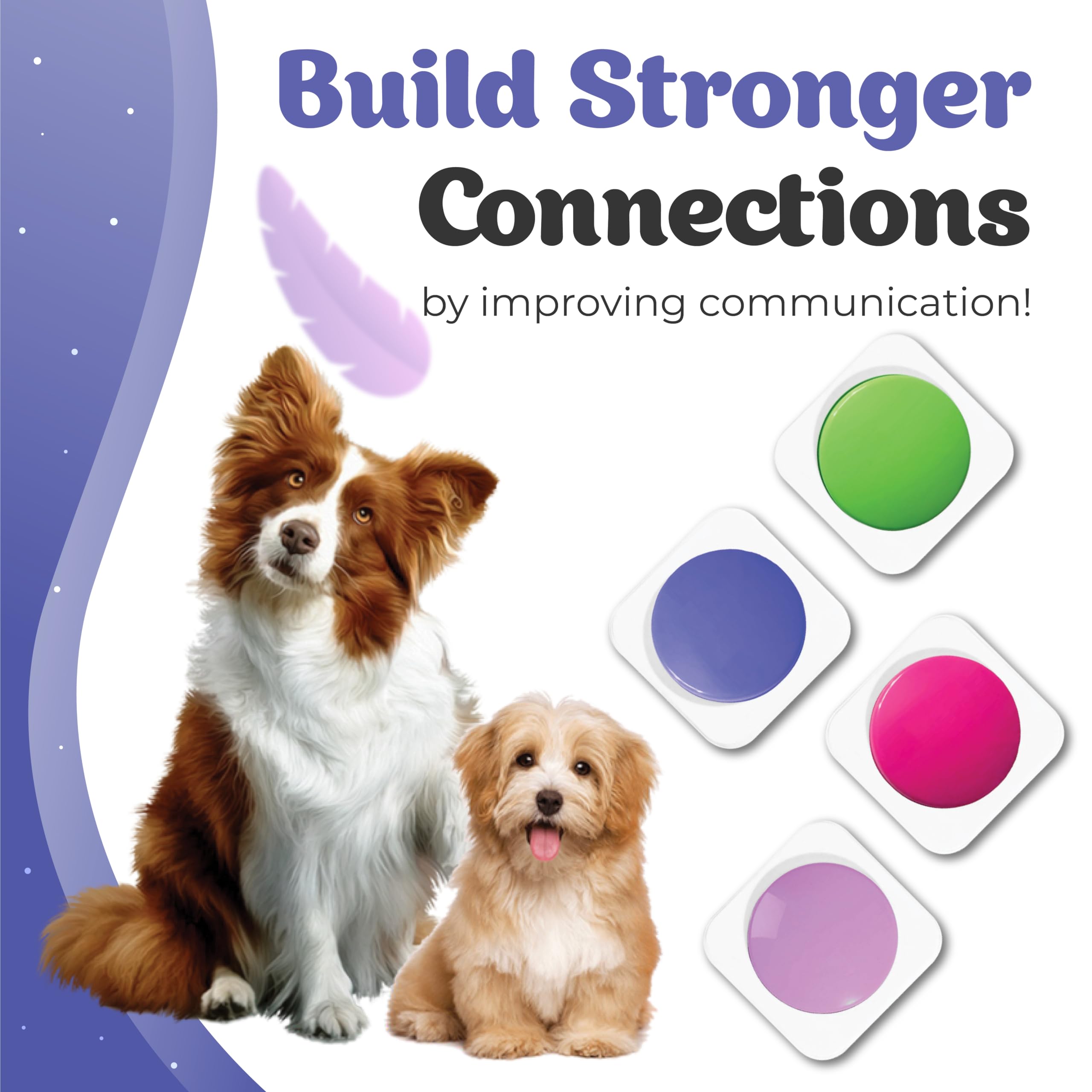 Que ce soit pour la communication ou le dressage, il enregistre parfaitement vos commandes et les reproduit fidèlement, ce qui en fait un accessoire de dressage efficace. Jouet Parfait pour Chiot]: le bouton de parole de chien est un très bon jouet de formation de chien. Vous pouvez enregistrer toutes sortes de commandes telles que "manger", "jouer", "sortir", "câliner", "oui", "non", etc. De cette façon, votre animal de compagnie peut mieux communiquer avec vous 【Accessoires de dressage pour animaux 】 Éveillez l'intérêt de votre chien avec ces 4 boutons de questions-réponses colorés ! Ce système de questions-réponses est le cadeau idéal pour Noël, un anniversaire ou toute autre occasion. Ce jouet éducatif unique est parfait pour les chiens, les chats et bien plus encore. Laissez des messages amusants ou participez à des jeux interactifs. Les boutons vocaux de dressage enregistrent diverses commandes pour une expérience interactive et stimulante. REAQUE Lot de 4 Bouton Parlant d'entraînement, Communication 【Enregistrement clair, lecture naturelle 】 La fonction d'enregistrement vous permet de profiter jusqu'à 30 secondes de bips clairs ! Ce jouet éducatif innovant stimule les capacités cognitives et ouvre de nouvelles voies de communication. Ses matériaux de haute qualité garantissent une longue durée de vie, garantissant que ce buzzer est toujours prêt pour votre animal adoré. Avec une fonction d'enregistrement, ces boutons permettent à votre chien de s'exprimer en appuyant sur l'un des quatre boutons disponibles. Chaque bouton peut enregistrer jusqu'à 30 secondes de message, offrant ainsi une méthode innovante pour l'entraînement et l'interaction avec votre chien Jouet éducatif Chien Buzzer Enregistrable, 4 Bouton De Conversation Enregistrable Pour Dressage Interactif Boutons Facile à nettoyer, il est incroyablement facile à nettoyer et sûr à utiliser.
