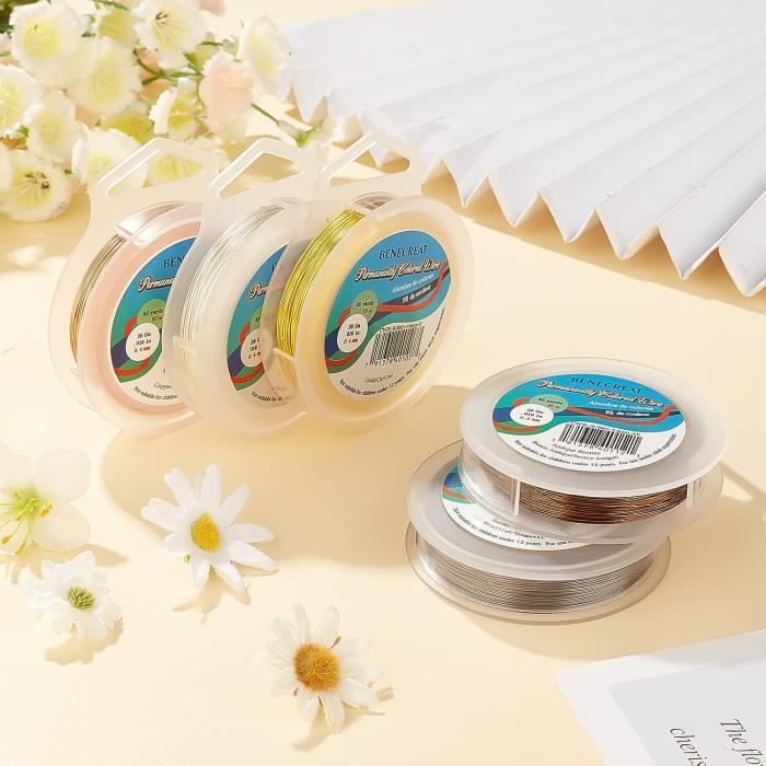 Fil de cuivre pour la fabrication de bijoux en gros pour création Fil Cuivre Pour Bijoux Pandahall Fil De Cuivre Résistant Au Ternissement De Calibre Fil Cuivre Pour Bracelets Boucles D'oreilles Nombreuses applications : le kit d'emballage en fil de cuivre est parfait pour les bracelets, boucles d'oreilles, colliers et autres bijoux, également idéal pour les travaux manuels tels que les décorations d'intérieur, les porte-clés, les décorations suspendues, les emballages cadeaux. Lot de 4 rouleaux de fil de cuivre pour bijoux - Couleurs mélangées - 0,4/0,5/0,8 mm Dimensions : Fil de cuivre pour bijoux : calibre 26, 0,4 mm, environ 12 m, 2 rouleaux. Matériau : fabriqué en cuivre de haute qualité + acier au carbone, avec revêtement anti-ternissement et résistant, durable et robuste, avec un trempage doux et une surface lisse, peut être utilisé pendant une longue période. Fil à bijoux en cuivre: contient 6 styles de fil à bijoux en métal. 4 rouleaux de 26 jauge (0.4mm), 12~15 m (39.37 pi ~ 49.21 pi)/rouleau, en noir, or, couleur marron et argent. 2 rouleaux de 20 jauge (0.8mm), 10 m (32.8 pi)/rouleau, en noir et blanc 3 tailles de fils : 3 tailles de fils de cuivre pour bijoux, y compris 0,4 mm, 0,5 mm, 0,8 mm. Fil de cuivre rond ColourCraft Wire 0.81 mm anti-ternissement - Naturel... Facile à utiliser : avec la pince à bijoux, vous pouvez couper les fils à la longueur dont vous avez besoin, ce qui rend votre processus de bricolage plus pratique. Fil de cuivre pour bijoux : calibre 20, 0,8 mm, environ 3 m / rouleau.