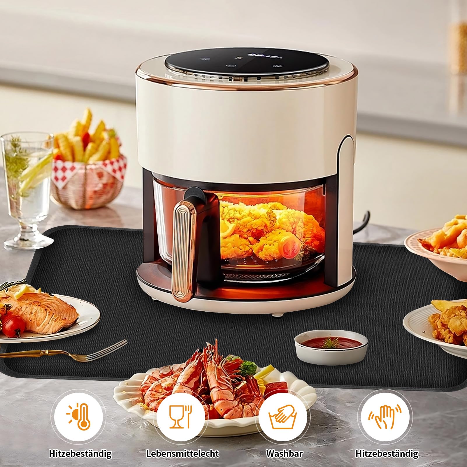 Tapis résistant à la chaleur]Fabriqué en fibre de verre et en silicone, le Tapis d'isolation résiste à la chaleur jusqu'à 500 °C (1022 °F). Il est également imperméable, antidérapant et antitache Profitez d'une résistance au glissement optimale et d'une stabilité accrue pour une utilisation en toute sécurité. Tapis Antidérapant Cuisine Teglie Per Friggitrice Ad Aria Tapis Résistant à La Chaleur 60x40cm - Protection Pour Friteuse à Air, Four Et Plans De Travail Tapis Chaleur Protection Plan De Travail Cuisine Protection Efficace du Plan de Travail: Ce tapis de haute qualité protège vos surfaces de cuisine des dommages causés par la chaleur. Il offre une couverture étendue et une protection polyvalente pour diverses utilisations en cuisine. Il suffit de l'essuyer avec un chiffon humide ou de le laver à l'eau savonneuse. Grattoir Chat - Antidérapant Et Résistant À L'Usure - Tapis Pour Chat... Grattoir Chat - Antidérapant Et Résistant À L'Usure - Tapis Pour Chat Stabilité et Anti-dérapant: La surface en silicone lisse du tapis facilite le déplacement des appareils lourds sur le plan de travail sans nécessité de les soulever. Taille Adaptée et Polyvalence: Avec ses dimensions de 40x60 cm, ce tapis convient parfaitement à la plupart des ustensiles de cuisson et appareils à haute température. Utilisez-le sous vos appareils chauds pour préserver l'intégrité de vos plans de travail sans craindre les brûlures ou les taches thermiques.