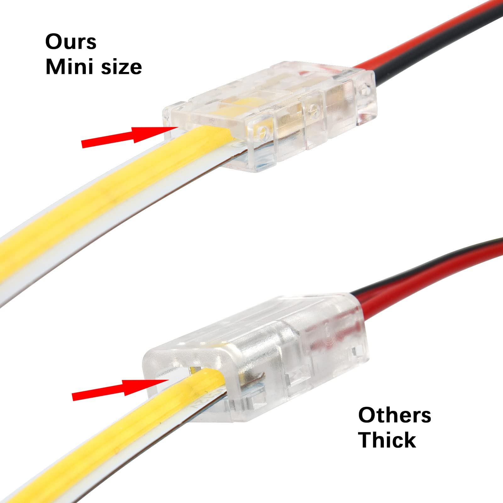 Connecteurs à 5 broches pour Rubans LED | LED oent Ce connecteur de bande LED vous permet de bricoler vous-même pour un travail sûr et facile, vous pouvez le faire vous-même et économise de l'argent. Connecteur Transparent L 19,7 Mm Ruban Led Cob Connecteurs De Bande LED COB,10Pcs 2-Pin Connector Gapless Bandeau Led Exterieur Etanche Accessoire éclairage LED Facile Installer Lot de 12 connecteurs d'angle à LED COB - 2 broches - 8 mm - Connecteur de câble - Clips non câblés - Pour bandes LED 12 V 24 V Fiche et paramètres COB : le connecteur COB pour bande LED est fabriqué à partir de matériaux sélectionnés de qualité supérieure, robuste et durable. Design transparent : la bande LED Cob dispose d'un boîtier transparent qui assure une intégration transparente dans votre système d'éclairage sans bloquer la lumière. Réutilisable : cette bande LED 24 V est réutilisable et peut être réinitialisée si vous voulez la déplacer. Kit de connecteurs LED COB 2 broches 8 mm] : Ce kit comprend 12 connecteurs pour bandes LED COB sans espace et 8 connecteurs d'angle pour bandes LED COB 2 broches en L, soit un total de 20 connecteurs Connecteur Bande Led 2 Broches Facile à utiliser : kit de connecteurs COB avec 8 connecteurs d'angle transparents en forme de L sans espace, 19,7 mm de longueur et 16,35 mm de largeur, et 4 connecteurs transparents sans espace, 17 mm de longueur et 10 mm de largeur, facile à installer et pas de soudure nécessaire. L'avantage du paquet mis à jour est qu'il peut être réinitialisé à plusieurs reprises et que l'installation est plus pratique. Tension d'installation : 0-36 V, courant : 5 A.