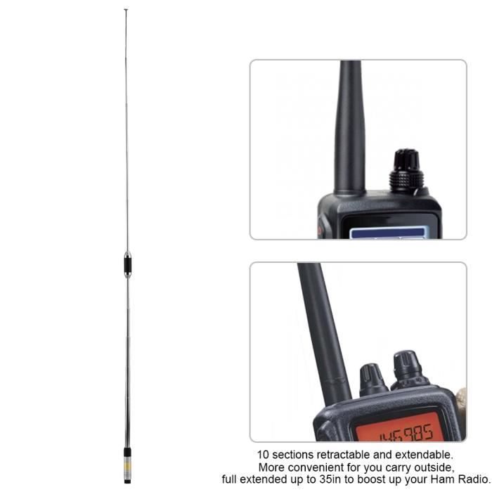 Jingtong portable pour talkie-walkie : JT-208, JT-308, JT3118, JT2118 PUXING Radio portative : PX-777, PX-777 Plus, PX-666, PX-3288 WEIERWEI Portable pour talkie-walkie : VEV-3288S Radio portable FDC : FD-6288 Contenu du paquet : 1 xNA-771 pour SMA avec antenne femelle Commandez Améliorez votre communication avec l'antenne NA771 pour talkie-walkie compatible femelle, gain de 2 15 dB, longueur 40 cm, puissance 10 W (A décrire : L'antenne fouet NA-771 vous offre une plus grande portée sur votre radio. Portée étendue : l'antenne fouet NA-771 augmente considérablement la portée de votre radio, permettant une meilleure réception du signal. Pesant seulement 45 g et mesurant 40 cm de long, il offre un équilibre entre durabilité et portabilité. Légère : fabriquée avec des matériaux, cette antenne est conçue pour résister à un usage quotidien et aux conditions extérieures. Augmentez considérablement votre signal radio., C'est !, Fréquence : 144/430 MHz., Gain : 2,15 DBI/3,0 dB. Antenne Talkie-walkie Nagoya Antenne Nagoya NA-771 BNC 38 Cm - Double Bande 144/430 MHz Pour Talkies-walkies Antenne 144 430MHz Linton tient la radio : LT-2288, LT-3288, LT-3188, LT-2188, LT-3260, LT-2268, LT-3268, ., ., etc. Cette antenne a un signal de 2,15 dB et une puissance allant jusqu'à 10 W. Compatibilité : Radio portable Kenwood : TK-2107, TK-3107, TK-2260, TK-3260, TK-3160, TK-278, TK-378, etc. Antenne NA 771 SJ portable SMA-FEM 144/430Mhz. Fréquences : 144/430 MHZ. Gain : 2.15 dBi. Longueur: 396mm. Poids : 53 g. connectique pour CRT 8WP... Antenne 144 430 MHz Renfort Signal Accessoire Radio Communication Antenne Nagoya NA771 Pour Talkie-Walkie - Améliore Signal 144/430MHz - Compatible Baofeng UV5R, BF888S Antenne Vhf Bateau Amélioration Signal Portée Radio Puissance maximale : 10 pour watts., Impédance : 50 ohms., Longueur : 40 cm., Poids : 45 g., Couleur : noir.
