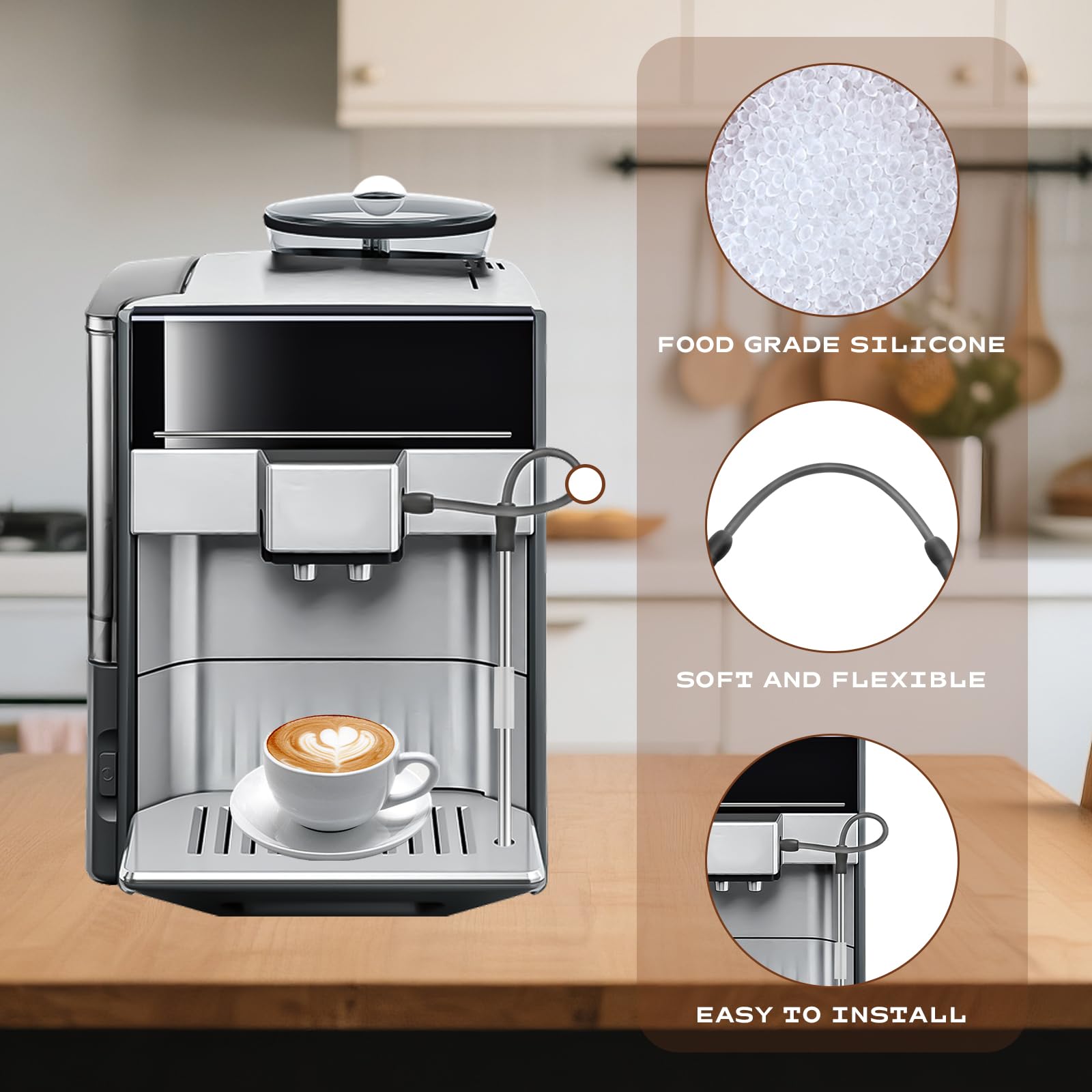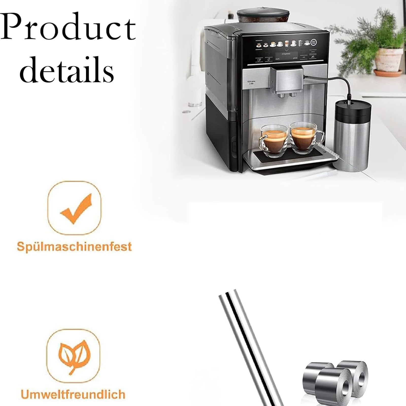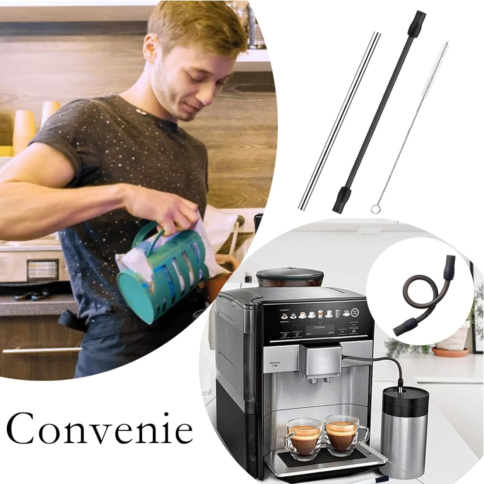 EN STOCK : Tuyau à lait compatible avec Siemens EQ6, tuyau à lait et brosse de nettoyage (lot de 3), pièce de rechange de machine à café automatique compatible avec Bosch Veroaroma, argenté et noir, LinDuxe-K0178-250725018 pas cher. Livraison rapide partout en France Forte durabilité : compatible avec Siemens Eq6 Series a une durabilité élevée et des performances anti-âge, peut être utilisée pendant une longue période sans être facilement endommagé, réduisant ainsi la fréquence de remplacement et les coûts d'entretien Compatible Bosch VeroAroma 700 500 Tuyau à Lait Compatible Avec Siemens Eq6, Tuyau à Lait Siemens Eq6 Machine à Lait Aucun outil ou compétence complexe n'est nécessaire, ce qui permet d'économiser du temps d'installation et des coûts de main-d'œuvre. Installation facile : la conception de la pièce de rechange Eq6 est facile à installer, de sorte que les utilisateurs peuvent facilement le connecter au distributeur de lait Compatibilité parfaite : notre tuyau à lait compatible avec Siemens EQ6 est compatible avec les machines à café Siemens EQ6 EQ700 et les machines à café automatiques Bosch VeroAroma. En acier inox et silicone alimentaire - diamètre intérieur 6.3mm, longueur 220mm. Intérieur lisse pour éviter que le lait accroche. Résiste à la chaleur et à la... Tuyau d'évacuation seche linge Bosch Siemens - Electroménager Débit élevé : tuyau à lait Siemens Eq6 Une construction intérieure judicieuse et une faible résistance à l'écoulement garantissent un débit fluide et rapide et améliorent les performances globales de pompage Sécurité des matériaux : pièce de rechange du tuyau à lait EQ6 Fabriqué à partir de matériaux de haute qualité, de sorte qu'aucune substance nocive ne soit libérée lors du versement du café, ce qui garantit la pureté et la sécurité du lait Taille : les détails sont représentés sur l'image