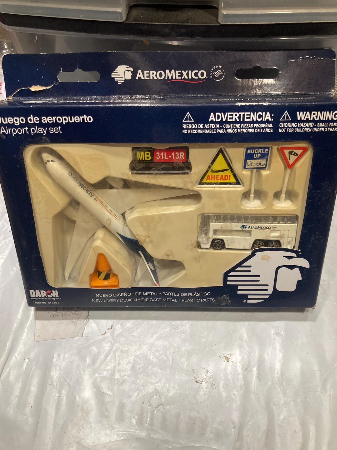 Die-cast metal with plastic parts Daron - Aeromexico Playset, juego de aeropuerto Daron AeroMexico Airport Play Set comes with 787, bus, cones and signs. Daron Skymarks Aeromexico 787-8 Kit de construcción de Modelo de avión Set Aviation Avec Bus Et Accessoires SkyMarks Daron Aeroméxico 787-9 1/200 Collectible Injection Molded Airplane Set De Jeu Aéroport Daron All play well together.