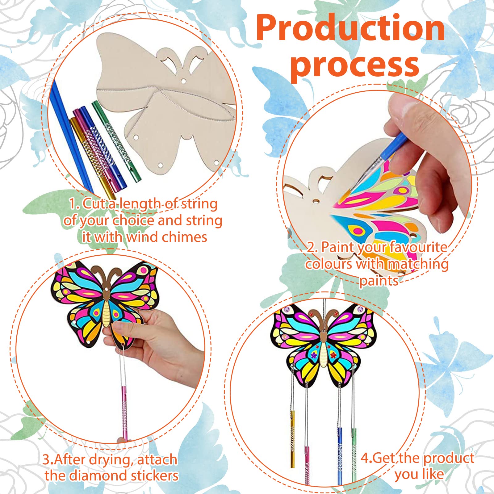 Autocollant Mural Miroir Papillon 3D Amovible 12/24 Pièces Bricolage Kit Bricolage Papillon Bois Enfant Bricolage Papillon 3D Enfants, 8 Pièces Papillon En Bois, Diy Créatifs Activité Manuelle Créative 3D Peut être utilisé pour le printemps, Noël, les anniversaires, les activités de fête, les récompenses de classe, les décorations de jardin à l'extérieur, les cours de bricolage, etc. 🦋 Kit Bricolage Papillon 3D pour Enfants - 8 x papillons en bois, 32 x sifflets carillons éoliens (couleur aléatoire), 12 couleurs, 2 x brosses, 1 x palette de peinture, 1 x autocollant diamant, 8 x 1m de ficelle. 🦋 Créatifs Activité Manuelles - Les enfants peuvent fabriquer des carillons éoliens avec leurs parents et les peindre avec leurs couleurs préférées. L'artisanat du papillon pour enfants est fabriqué à partir de bois naturel, non toxique et inodore, solide et durable pour une utilisation à long terme. Une fois polie, sa surface est lisse et ses bords sont arrondis, évitant tout risque de blessure aux doigts 🦋 Exterieur Suspendue Décoration - vous et vos enfants pouvez accrocher les carillons dans la cour et vous asseoir sur les chaises pour écouter les chefs-d'œuvre terminés, qui détendent le corps et l'esprit et réduisent le stress. BouGPeng iroir à ain Princesse en Bois de Bricolage 16 Pièces Loisirs... 🦋 Cadeaux pour Enfants - kit de bricolage parfait pour les filles et les garçons. 🦋 Matériaux de Haute Qualité - Le carillon à vent pour enfants est fabriqué en bois de bonne qualité, finement travaillé avec une surface lisse et sans bavures, facile à peindre et à colorier, ce qui convient très bien aux produits pour enfants faits à la main.