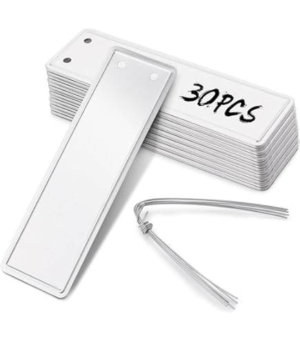 Caractéristiques : * Fabriqué en aluminium de haute qualité, il est durable et peut être écrit des deux côtés, imperméable et résistant aux UV. Etiquettes Aluminium – SARL – Solutions d'Identification * Vous pouvez enregistrer toutes les informations avec un marqueur, un crayon ou d'autres objets pointus. *Couleur : conforme à l'image. - [Facile à accrocher] Les fils métalliques ont été coupés à la taille appropriée, ce qui vous permet d'accrocher facilement les étiquettes sur n'importe quelle plante. Marqueurs Plantes Imperméables Marqueurs Plantes Métal 100 étiquettes Aluminium Jardin - Double Face Avec Fils Métalliques 8.2x2.5cm étiquettes Jardin Métalliques étiquettes Métal Avec Fils Le message est permanent et peut être lisible pendant des années. - [Durabilité] Fabriquées à partir d'aluminium de haute qualité, ces étiquettes pour plantes sont conçues pour durer et résister aux conditions météorologiques difficiles. - [Design à double œillet] Le design à double œillet répartit la charge sur les attaches de fil, les protégeant contre la déformation ou le retrait par le vent. * Facile à accrocher, les fils métalliques ont été coupés à la taille appropriée, vous pouvez l'accrocher à la plante grâce au fil métallique. Étiquettes pour Plantes Noires 10cm lot de 50 : Organisez votre jardin Caractéristiques : *Nom de l'article : étiquettes pour plantes., *Matériau : aluminium. Double face] Enregistrez toutes les informations que vous voulez sur les deux côtés de l'étiquette – Parfait pour identifier les arbres, les arbustes, les...