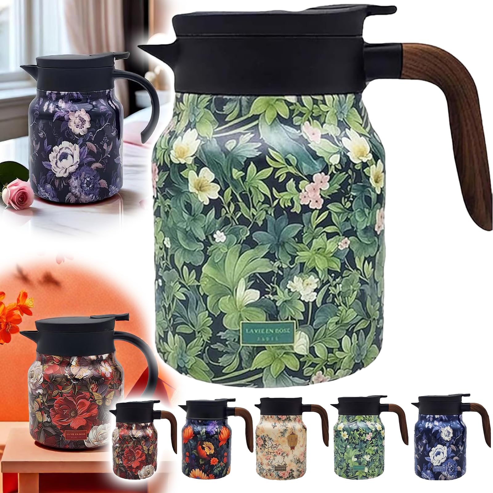 Distribution d'eau sous pression : cette théière thermos Doresty dispose d'un infuseur à thé intégré et d'un système unique de distribution d'eau sous pression pour une utilisation sans effort d'une seule main. Achetez Doresty Thermos à Motif Floral Vintage, Théière Vintage Raidley avec Infuseur Intégré, 28 Oz/35 Oz Théière Isolée 316 SS avec Infuseur (C - Poignée en Plastique, 28 Oz) à Canada Nom du produit : théière à ragoût avec poignée en bois. Avec une simple pression, l'eau coule en douceur, offrant une expérience de versement efficace et sans désordre Cette caractéristique maintient non seulement la température, mais améliore également la saveur et l'arôme de votre thé Conservation de la chaleur durable : grâce à l'isolation multicouche, cette bouilloire retient la chaleur, gardant votre thé chaud pendant une période prolongée. Matériau : polypropylène de qualité alimentaire + PC + ABS. Bouteille isotherme,Thermos,avec infuseur à thé,température,filtre à café,en acier inoxydable Bec verseur en forme de V : le bec verseur en forme de V est conçu pour un débit optimal, assurant un versement fluide avec un minimum de déversements. Capacité du produit : 1000 ml. Filtre intégré : filtre à mailles fines, filtre efficacement le thé, séparation pratique du thé et de l'eau. D'une simple pression, l'eau s'écoule en douceur, pour un versement efficace et sans dégâts grâce à l'infuseur intégré au motif floral vintage Théière Raidley Vintage à Motif Floral, Théière Doresty Thermos Nieuwe 2025 Thee Raidley Vintage Avec Infuseur Mini Cafetiere Chaude Carafe Isotherme En Acier Inoxydable Avec Couvercle Pour Boissons Chaudes 1 000 Ml Matériau du thé : acier inoxydable 316., Matériau de la doublure : acier inoxydable 316., Matériau : acier inoxydable 304., Bouilloire à thé : cette bouilloire à thé vintage a un infuseur à thé intégré et prend en charge une utilisation à une main, ce qui facilite l'infusion du thé avec une simple pression.