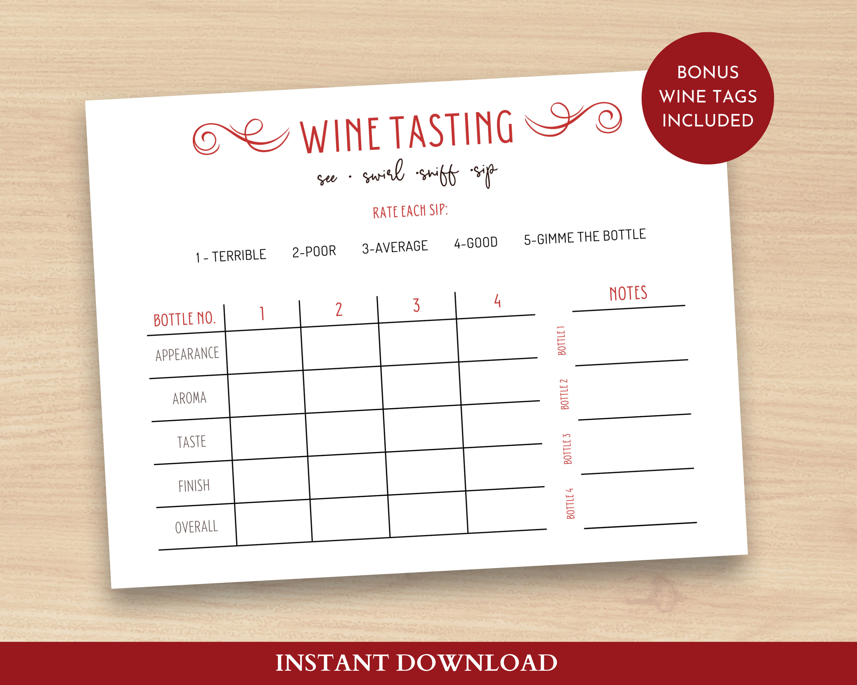 Collecte efficace de commentaires : les cartes de commentaires sur de vin simplifient les évaluations des invités lors des événements, ce qui facilite la collecte d'avis précieux et la création d'une expérience de dégustation de vin mémorable, carte de dégustation de vin, cartes de notes de dégustation de vin Fiche de dégustation de vins 4 vins, Carte de dégustation de vins, Fiche d'évaluation imprimable de dégustation de vins, Étiquettes de vin, Fiche d'évaluation de la dégustation à l'aveugle, Fiches d'évaluation des Notation simplifiée : les cartes de guide de notation de dégustation de vin fournissent des instructions claires, rendant le processus de notation accessible et cohérent pour les niveaux de dégustateurs, cartes de dégustation à l'aveugle de dégustation de vin, modèle de notes de dégustation de vin Cartes d'analyse de dégustation de vin Idéales pour les professionnels et les , chaque carte de commentaires de dégustation de vin capture efficacement des et des saveurs nuancés, élevant les évaluations et les cartes d'expérience de dégustation de vin pour chaque rassemblement -Informations sur le produit : Fiche d'évaluation du vin - Design élégant et polyvalent : conçues comme des cartes de fournitures de fête de dégustation de vin, ces cartes élégantes améliorent l'ambiance de , adaptées aux événements professionnels ou aux rassemblements chics comme les cartes de conception de verre de dégustation de vin -Évaluation professionnelle : les cartes professionnelles de dégustation de vin fournissent une notation structurée pour garantir une évaluation précise et équitable lors de tout événement de dégustation de vin ou de toute compétition de dégustation de vin en vrac -Taille : 18,00 x 12,60 x 0,10 cm/7,07 x 4,95 x 0,04 pouces, cartes de notes de dégustation de vin -Matériel : Cartes de concours de dégustation de vin en papier -Couleur : Cartes de comparaison de dégustation de vin rougeDescription des marchandises Cartes de dégustation de vin Transformez vos soirées de dégustation de vin en événements raffinés avec ces cartes professionnelles de dégustation de vin, conçues pour une évaluation précise des notes de saveur et des cartes de comparaison détaillées de dégustation de vin. C’est l’outil parfait pour vous guider étape par étape dans la dégustation ! La fiche de dégustation vous aidera à mieux vous souvenir de tous les vins que vous avez dégusté (en prenant des notes, on fait travailler notre cerveau et on mémorise mieux les informations Gestion transparente des événements : ces cartes de fournitures pour événements de dégustation de vin rendent la gestion des commentaires des invités, la notation des vins et les sélections des gagnants efficaces dans toute expérience de dégustation de vin, cartes d'atelier de dégustation de vin, cartes de guide de notation de dégustation de vin Contenu du forfait 30 x cartes de dégustation de vinCaractéristiques - Informations basées sur les données : utilisez des fiches de dégustation de vin pour suivre, comparer et analyser au fil du temps, aidant ainsi les amateurs de vin à découvrir leurs préférences uniques. Carte de pointage personnalisée pour napperon de dégustation de vins à l'aveugle, carte de dégustation de vins, jeux de dégustations de réveillon du nouvel an vols de vins dégustations virtuelles PDF numérique