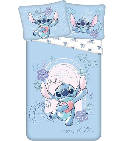 Parure de lit Stitch Aloha - Ma Parure Lit Enfant Housse De Couette Angel 1 Personne, 140x200 Cm 1 Personne Parure De Lit Stitch Taie assortie avec Stitch en pose joyeuse sur fond arc-en-ciel. ✅ Offrez une touche de tendresse et de magie à la chambre avec cette charmante parure de lit mettant en scène Stitch et Angel, les célèbres personnages de l’univers Disney. 🛏️ Dimensions : Housse de couette : 140 x 200 cm. Aymax Parure de Lit Stitch & Angel Magical, 1 Personne, Housse de Couette Réversible 140x200 cm Taie d'oreiller 65x65 cm. Vendu par 👕 Composition : 52 % coton, 48 % polyester – douce, respirante et facile d’entretien. Découvrez nos offres Housse de couette Stitch et Angel : large sélection de produits au meilleur prix | Livraison gratuite à partir de 10€* | Entreprise française | Paiement 4x possible 🎨 Design : Face principale : Stitch et Angel enlacés dans une ambiance pastel féérique. Sur un fond doux parsemé d’étoiles, les deux inséparables extraterrestres se serrent affectueusement sous l’inscription « You are magical ».