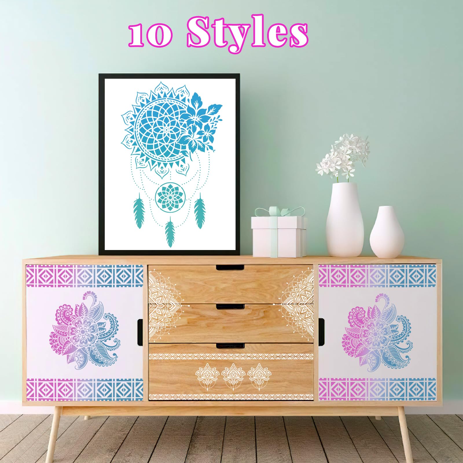 Peinture Pour Tissu 16 Pièces Pochoirs De Peinture Mandala, Pochoir De Peinture, Réutilisable Peinture Pochoirs Pochoirs Motifs Grands Dessins En utilisant différents outils de peinture pour remplir différentes couleurs dans le contour du motif des modèles de dessin,il suffit d'attendre quelques secondes pour obtenir un joli motif mandala. Caractéristiques -Couleur : -Matériau : PET -Taille : 20,00 x 20,00 x 0,10 cm/7,86 x 7,86 x 0,04 pouces - votre créativité : modèles de peinture mandala offrent possibilités infinies, parfaits pour les amateurs de bricolage qui cherchent à leurs capacités artistiques - Simple à utiliser : pas besoin de compétences professionnelles... MWOOT Lot de 10 grands pochoirs mandala réutilisables en plastique pour travaux manuels, mur, carrelage, meubles, bois et décoration d'intérieur (29 x 21 cm Ces pochoirs Mandala seront de superbes cadeaux pour la famille, les amis, les amateurs de DIY et les débutants. La taille de chaque pochoir est de 29x21 cm (11., 4x8., 26 in) 4 Pièces Pochoirs Mandala Peinture Pochoir Dessin Réutilisable Fleurs Ils peuvent être utilisés pour les murs en toile, les papiers, le bois, les meubles, les carreaux, le tissu, etc. MWOOT Ensemble de 10 grands pochoirs pour peinture mandala, modèles de dessin (10 styles) Caractéristiques : Pochoir Mandala lavable, réutilisable, pliable, petit et flexible. Quelques détails : Le paquet comprend : 10 x Pochoirs à peindre Mandala Style : 10 formes différentes de mandala Couleur : Blanc laiteux Matière : Plastique Taille : 29x21 cm (11., 4x8., 26 in) Large gamme d'applications : Fonctionne avec tous vos outils, y compris les pinceaux de peinture, les aérographes, les crayons de couleur, les marqueurs, les crayons de croquis, la pulvérisation de peinture, etc. Nous recommandons d'appuyer fermement les pochoirs sur la surface de l'objet, puis d'y appliquer la couleur. Ils peuvent être utilisés pour les rideaux en pierre de roche, les murs en toile, les papiers, les planches, les meubles, les panneaux, les tissus, etc. Large Gamme d'applications : Concentrez-vous sur votre imagination. Reutilisable : Ces gabarits de peinture fiables sont fabriqués en PET avec une grande flexibilité. Offrez-vous une expérience de bricolage créative et rendez vos travaux de bricolage plus amusants et plus riches.