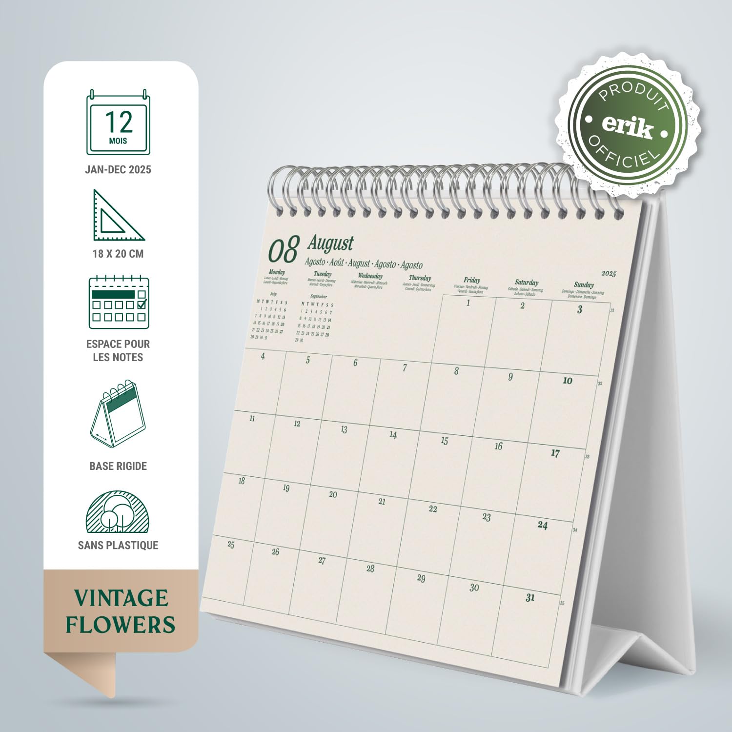Ce calendrier de bureau est l'accessoire idéal pour ne jamais manquer un rendez-vous tout en apportant une touche stylée et fonctionnelle à votre intérieur. PAPIER 300g - Conçu en papier de haute qualité de 300g, ce calendrier assure un confort d'écriture optimal et est parfait pour une organisation sans traces ni bavures tout au long de l'année. Achetez Grupo Erik - Calendrier de Bureau 2026 Glitter | Calendrier Mensuel 17x20cm - De Janvier à Décembre 2026 Dulceros Personalizados Plim Plim 100pzas De 17x20cm | Envío gratis Parfait pour un usage personnel ou professionnel, il combine organisation pratique et décoration moderne. MULTILINGUE - Le calendrier est en français, anglais, italien, espagnol, allemand, portugais Il s'intègre parfaitement dans n'importe quel espace en apportant une touche décorative à votre intérieur PAPIER ÉPAIS - Fabriqué avec un papier de haute qualité de 300g, ce calendrier offre un grand confort d'écriture et est donc parfait pour s'organiser efficacement tout au long de l'année, sans bavures ni traces Organisation Année Décorative Calendrier 2025 Original Grupo Erik - Calendrier De Bureau 2026 Marvel | Calendrier Mensuel 17x20cm - De Janvier à Décembre 2026 Calendrier Bureau 2026 à Poser Agenda 2026 Format Bureau MULTILINGUE - Disponible en plusieurs langues, dont le français, l'anglais, l'italien, l'espagnol, l'allemand et le portugais, pour une utilisation facile et accessible. Organisez votre année avec élégance grâce à notre calendrier de bureau 2025/2026 ! CALENDRIER DE BUREAU - Une fois le calendrier posé, il mesure 17x20 cm avec les anneaux.