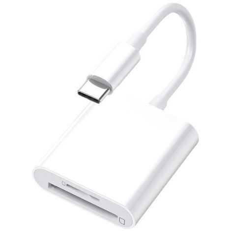 Argent ios à TF-Adaptateur OTG externe pour iPhone, Micro, Type C, SD Adaptateur SD Pour Téléphone Lecteur De Carte SD Pour IPhone/iPad, Caméra De Piste, Visionneuse Lecteur Plug Play IOS Android Performance de transmission : adaptateur SD pour Ipho-ne prend en charge la transmission de données bidirectionnelle à haute vitesse et convient à une variété de formats de fichiers, tels que JPEG, RAW, H., 264, etc. Matériau : ABS et fil TPE. Compatibilité avec les appareils : adaptateur carte SD pour Ipho-ne prend en charge iPhone/iPad avec iOS 12., 0 et versions ultérieures, appareils Android OTG et appareils avec port Type-C, tels que les nouveaux MacBook, iPad Pro, Samsung Galaxy, etc. Ce lecteur de carte SD est un outil indispensable pour les professionnels de la création, les photographes, les voyageurs et tous ceux qui ont besoin d'accéder et de transférer des données de manière rapide et fiable Compatibilité avec les cartes mémoire : l'adaptateur pour Ipho-ne Carte SD est compatible avec différents types de cartes mémoire, y compris SDXC, SDHC, SD, MMC, Micro SD, TF, etc. Adaptateur Lightning vers HDMI USB SD TF, lecteur de carte numérique AV TV 1080P OTG, Hub de... Fonction Plug and Play : Ca-vo pour passer les photos de l'appareil photo au téléphone ne nécessite pas l'installation de pilote, plug and play, prend en charge le transfert facile de fichiers, photos et vidéos entre téléphones portables, tablettes, ordinateurs et autres appareils, pratique et rapide. Couleur : blanc Dimensions : 155 x 65 x 17 mm.