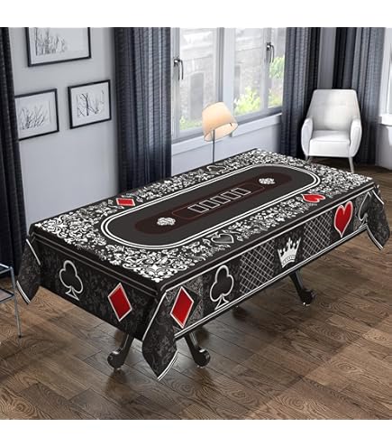 Design unique sur le thème du casino : inspirée des éléments de cartes à jouer, cette nappe de casino présente une disposition et un motif distinctifs. Lorsque les invités sont assis autour de la table et jouent au poker ou à d'autres jeux, les éléments de la carte à jouer sur la nappe reflètent le jeu réel comme s'ils étaient dans un vrai casino. Paquet et taille : vous recevrez 4 nappes de fête sur le thème du casino mesure environ 130 x 220 cm. La nappe rectangulaire est assez grande pour couvrir la plupart des tables, vous pouvez facilement couvrir plusieurs tables lors de votre événement à thème de casino Deco Casino(. 266 résultats. ) ; Générique / Articles de fêtes et décoration festive · 33,97 € ; Générique / Décoration · 18,99 € ; Générique / Décorations de fête... Matériau : cette housse de table pour cartes est fabriquée en polyéthylène et est résistante aux liquides renversés accidentellement ou aux salissures qui peuvent survenir lors de votre fête grâce à ses excellentes propriétés imperméables Nappe Piquenique Lot De 3 Nappes Casino 213x213cm - Thème Poker - Déco Fête Las Vegas Nappe Picnic Facile à utiliser : grâce à sa texture douce, la nappe de table à cartes est facile à étaler et à ranger, ce qui permet de couvrir rapidement la table et d'économiser du temps et de l'énergie Exemples d'utilisation pratiques : les nappes de casino conviennent aux fêtes de casino, aux fêtes à thème poker, aux fêtes à thème rétro, aux décorations d'Halloween, aux événements de club, aux fêtes d'anniversaire de casino, aux jeux de table, aux jeux de cartes, aux événements de carnaval et bien plus encore Nappe Imperméable 130x220 Lot De 8 Nappes En Polyester Noires Pour Table Rectangulaire De 2,4 M Decoration Casino Contenu de l'emballage : 2 nappes noires de fête de casino. Cette nappe est sans aucun doute l'élément décoratif central lors de l'organisation d'une fête sur le thème du casino. Que ce soit pour une fête privée ou un événement d'affaires, si vous la mettez sur une table à manger, une table de jeu, etc.
