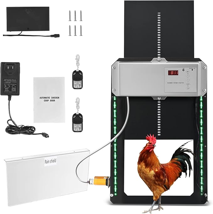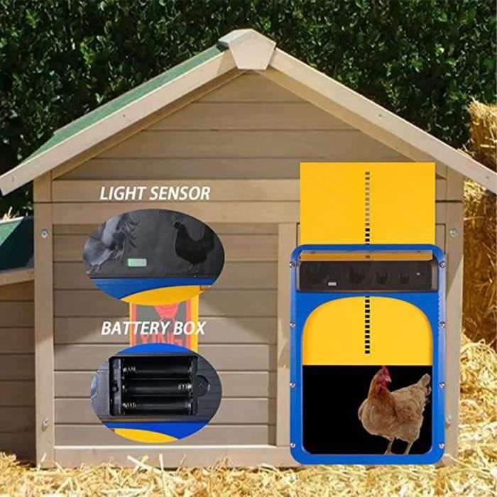 Télécommande Poulailler Contrôleur Automatique De Porte De Poulailler IP44, Minuterie Ouvre-porte Poulailler Automatique Télécommande jusqu'à 50 mètres : profitez de la commodité de contrôler votre porte de poulailler à une distance allant jusqu'à 50 mètres. Porte Poulailler Automatique, Porte Poulailler Automatique Capteur de... Il combine un mode chronométré et un mode manuel, permettant de régler les horaires d'ouverture et de fermeture en fonction des saisons et des habitudes de vos volailles Télécommande : 1 batterie 27 A 12 V (non incluse). La construction robuste garantit qu'ils peuvent résister aux prédateurs et fournir un environnement sûr pour vos poules, canards et autres volailles. Contrôleur de porte automatique de poulailler, télécommande de détection de minuterie, moteur d'actionneur de porte de poulailler - Animalerie Affichage LED haute définition : équipé d'un écran LED clair et facile à utiliser, ce contrôleur vous permet de régler et de surveiller facilement les heures d'ouverture et de fermeture spécifiques de votre porte de poulailler. Contrôle manuel pour le mode minuterie : le contrôleur automatique de porte IP44 Chicken Coop offre à la fois des modes de minuterie et manuels pour un confort ultime. Conçue pour accueillir les poules et les canards de toutes tailles, elle est l'accessoire parfait pour améliorer la sécurité et le confort de votre volaille. Fonction de contrôle : capteur de lumière, minuterie, télécommande., temps). Sa construction robuste garantit qu'il peut résister aux prédateurs et offre un environnement sûr pour vos poules, canards et autres volailles., 839 g. Cette fonction garantit l'efficacité et protège vos poules, canards et autres volailles des prédateurs nocturnes tels que les belettes. Mode minuterie et commande manuelle : le contrôleur de porte automatique poulet Coop de IP44 offre à la fois des modes de minuterie et manuels pour un confort ultime. Cette fonction garantit l'efficacité de la protection de vos poules, canards et autres volailles contre les prédateurs nocturnes tels que les prairies.