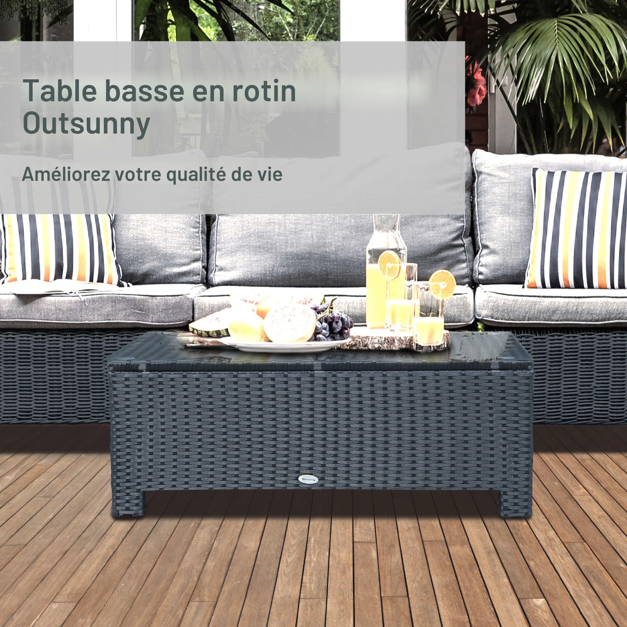 Convient à une utilisation intérieure et extérieure Explorez le ensemble de table gigogne de patio Outsunny, idéal pour l'extérieur avec un design noir emboîtable. Chaque table a un plateau en verre trempé de 0,5 cm, facile à nettoyer et sûr. Fabriquées en aluminium revêtu de poudre, elles résistent aux intempéries Chaque table a un plateau en verre trempé de 0,5 cm, facile à nettoyer et sûr. Supporte jusqu'à 30 kg, montage nécessaire DIMENSIONS PRATIQUES : Tables gigognes de jardin rondes : Ø 48 x 43H cm (grande), Ø 38 x 37H cm (petite) ; capacité maximale 30 kg ; montage simple requis DESIGN MODERNE ET POLYVALENT : Ce lot de tables gigognes de jardin apporte une touche élégante à votre espace, parfait pour poser boissons, livres ou décorations, à l'intérieur comme à l'extérieur Lot de 2 tables basses de jardin optimisant l'espace pour les objets quotidiens Tables basses gigognes de jardin - OUTSUNNY - structure métal époxy Plateau en verre trempé de la table d'appoint gigogne offrant durabilité et facilité de nettoyage Parfaites comme tables de nuit ou d'appoint. Conception emboîtable économisant de l'espace lorsqu'elle n'est pas utilisée Métamorphosez votre jardin avec ce salon de balcon Outsunny : un canapé deux places, deux fauteuils à motifs grain de bois et deux tables en verre trempé. Appréciez les coussins moelleux, amovibles et lavables, idéals pour détente et réceptions élégantes.Caractéristiques :- Ensemble de mobilier de jardin de cinq pièces : comprend un canapé extérieur deux places, deux fauteuils et... Table Empilable Aluminium Tables Basses Gigognes Carrées Design Verre Trempé Et Métal Noir Lot De 2 Tahl Mobilier Extérieur Compact Finition noire élégante pour un attrait esthétique moderne