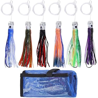 Un pack de 6 leurres de pêche à la traîne (trolling), chacun mesurant 8,5 pouces. Marque OCEAN CAT. Multicolores, avec hameçons solides taille 7/0 Forme de calmar réaliste : le design détaillé de calmar améliore l'attraction des poissons, ce qui facilite la prise de morsures lors de vos sorties de pêche Leurres Calmar 16cm PVC Leurre Eau Salée 21cm Leurres De Pêche Traîne OROOTL - Pour Gros Poissons Marins (marlin, Thon, Mahi) Mitraillette Peche En Mer Maquereau Kit 6 Leurres Couleurs Vives Pour Gros Poissons Taille du produit : 16 cm. Disponible en 6 couleurs : comprend 6 leurres dans des teintes vives, vous donnant une variété d'options pour correspondre aux conditions de l'eau Matériau PVC de qualité supérieure : durable à la corrosion, ces leurres sont conçus pour résister à diverses conditions de pêche Leurre de type jupe pour thon et marlin de 17 cm ; 6 couleurs différentes, monté professionnellement et présenté dans un sac résistant à l'eau salée. Pourquoi... Crochets Acier Inoxydable 7/0 Leurres Pêche Traîne YOTO Lot De 6 Veuillez vous référer à l'article physique. Queue d'aspect naturel : dispose d'une queue flexible qui imite les mouvements de vrais calmars, augmentant le taux de capture - Il peut y avoir une légère différence de couleur en raison de l'écran, de l'appareil photo ou d'autres facteurs.