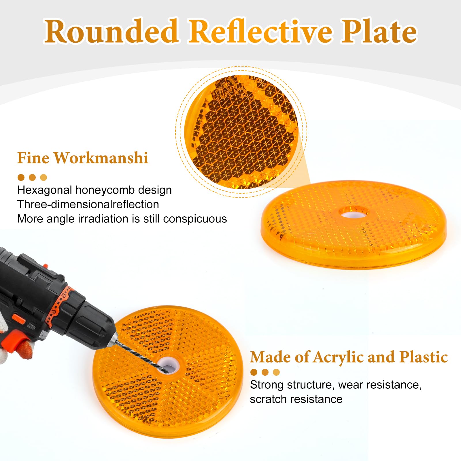 Contenu de la livraison : 6 réflecteurs orange, 6 vis et 6 écrous. Soyez le premier à laisser votre avis sur "Catadioptre rond lot de 6" Les champs obligatoires sont indiqués avec * * Votre avis Les dimensions des pendentifs yeux de chat sont : diamètre : 6 cm, trou : 6 mm, épaisseur : 6 mm, convient à la plupart des véhicules ; Le projecteur latéral œil de chat est fabriqué en acrylique de qualité supérieure et base en plastique ABS, structure robuste, imperméable et résistant à l'usure, aux rayures, incassable, longue durée de vie, avec marquage E, approuvé pour la circulation routière. Large gamme d'applications : les réflecteurs de remorque conviennent aux voitures, remorques, camions, camionnettes, tracteurs, camions à plateau, caravanes, camping-cars, motos, vélos, etc. Le pendentif œil de chat est également très facile à démonter en desserrant simplement l'écrou, ce qui permet d'économiser du temps et des efforts. Les remorques réfléchissantes améliorent la visibilité sur la route la nuit et par tous les temps, empêchant efficacement les accidents de la circulation en améliorant la visibilité et la sécurité lors de la conduite de nuit. Installation facile : percez d'abord un trou dans la surface de l'objet que vous souhaitez installer, puis insérez la vis dans le trou du pendentif réflecteur et serrez l'écrou pour le fixer fermement. Catadioptres ronds rouges, diamètre 60 mm Les réflecteurs de remorque améliorent la visibilité sur la route la nuit et par tous les temps et préviennent ainsi efficacement les accidents de la circulation en améliorant la visibilité et la sécurité lors de la conduite de nuit. Réflecteurs 60mm 6 Catadioptres Ronds Orange 60mm - Homologués E Lot 6 Catadioptres Vis Incluses Remorque CATADIOPTRE RECTANGLE VISSER ORANGE | Loisirs Caravaning St Oeil De Chat Sécurité Routière La taille du pendentif œil de chat est : diamètre : 6 cm, trou : 6 mm, épaisseur : 6 mm, convient à la plupart des véhicules. Les catadioptres arrière de remorque sont adaptés pour les voitures, les remorques, les camions, les camionnettes, les tracteurs, les chariots à plate-forme, les caravanes, les camping-cars, les motos, les vélos, etc. Les catadioptres œil de chat peuvent également être utilisés pour les marquages de route, les machines agricoles, les piquets de clôture et les clôtures de jardin. Caractéristiques du produit : Couleur : rouge. Quantité : 18 Matériau : acrylique, plastique Contenu de l'emballage : 6 catadioptres., 6 vis., 6 écrous.
