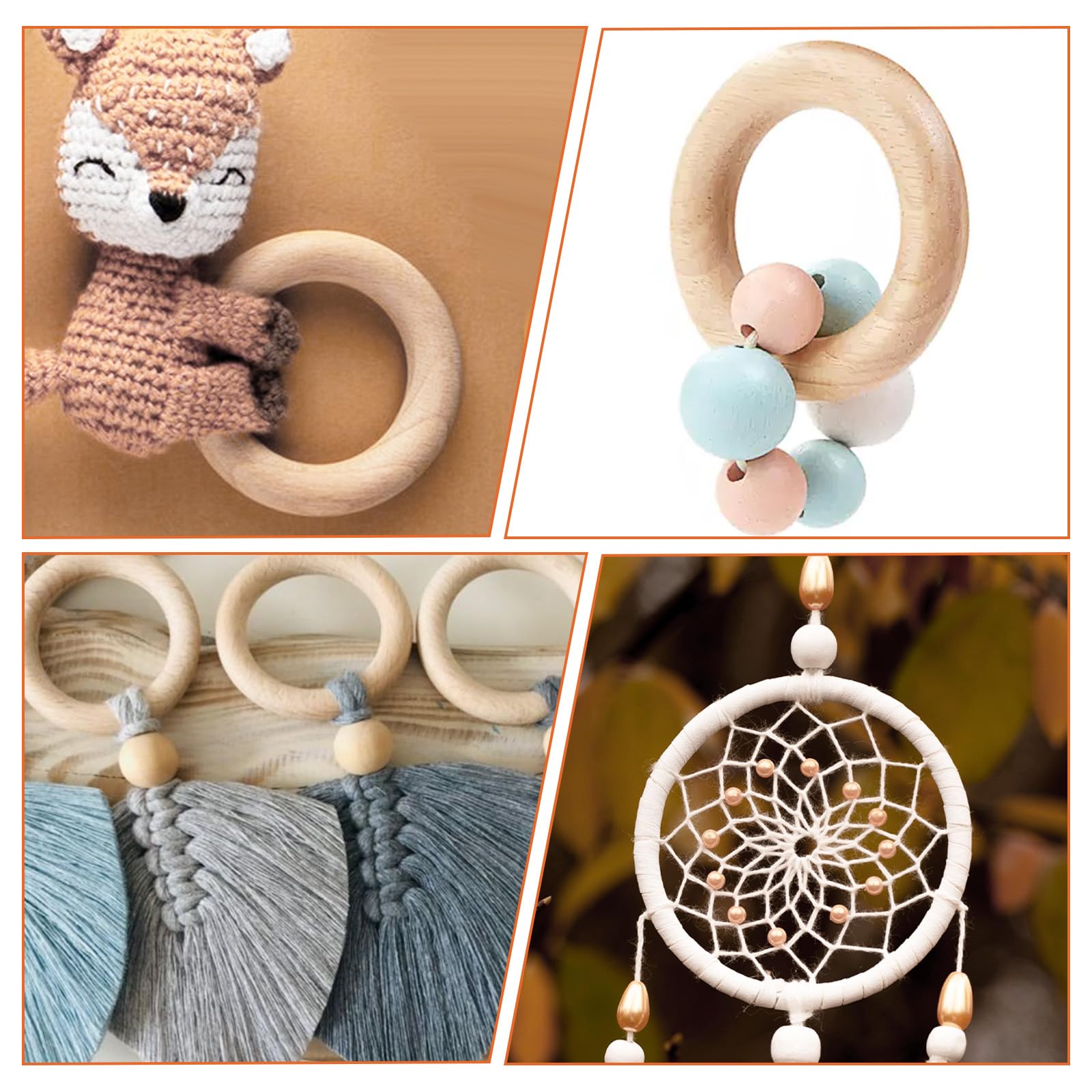 Avertissement De Sûreté Ce produit ne convient pas aux enfants de moins de 14 ans. Anneau de dentition macramé | Décoration Macramé Livrés en lot de 12, ces cercles en bois brut non traité offrent une qualité artisanale irréprochable. Fabriqués en bois naturel non traité, ces anneaux de bois 70mm offrent une qualité supérieure pour vos projets DIY et créatifs : leur surface lisse sans écharde permet une prise en main sûre et agréable, idéale pour les travaux de peinture, de teinture ou de décoration artisanale, tout en assurant une compatibilité parfaite avec les accessoires de puériculture et de décoration intérieure. Livré en lot de 12, ce jeu d’anneaux bois naturel représente une solution économique et pratique pour tous vos projets manuels : chaque cercle bois est soigneusement poncé pour offrir une finition douce, prêt à être utilisé dès réception pour vos besoins en décoration intérieure, activités créatives ou accessoires bébé personnalisés. Polyvalents et esthétiques, ces anneaux bois sont parfaits pour les loisirs créatifs : idéals pour la fabrication de mobiles pour bébé, de capteurs de rêves ou de suspensions murales bohèmes, ils ajoutent une touche rustique et chaleureuse grâce à leur texture naturelle et leur finition artisanale, s'intégrant harmonieusement dans toutes les ambiances déco. Utilisés comme anneaux de dentition naturels, ils soutiennent le développement de la motricité fine des bébés tout en garantissant une matière sans danger. Anneaux Bricolage Naturel 10 Anneaux Bois Naturel 70mm - Macramé Offrez à vos créations une base naturelle, durable et esthétique pour sublimer chaque détail. Leur surface lisse, exempte d’échardes, permet une manipulation sécurisée et agréable, adaptée autant aux adultes qu’aux enfants. Grâce à leur format pratique et leur finition soignée, ils s’adaptent à de multiples scénarios d’utilisation : décoration de chambre d’enfant, création d’accessoires sensoriels, projets de couture ou de tissage. Votre kit anneau de dentition en macramé à faire soi-même Plébiscité par les amateurs de travaux manuels en macramé, notre anneau constitué de bois naturel est l'élément idéal pour réaliser de charmantes petites œuvres d'inspiration bohème Anneau Dentition Anneau De Dentition Macramé – Ma Décoration Macramé Anneaux En Bois Leur texture naturelle apporte une touche rustique et chaleureuse à tous vos projets, qu’il s’agisse de décoration scandinave, bohème ou minimaliste.
