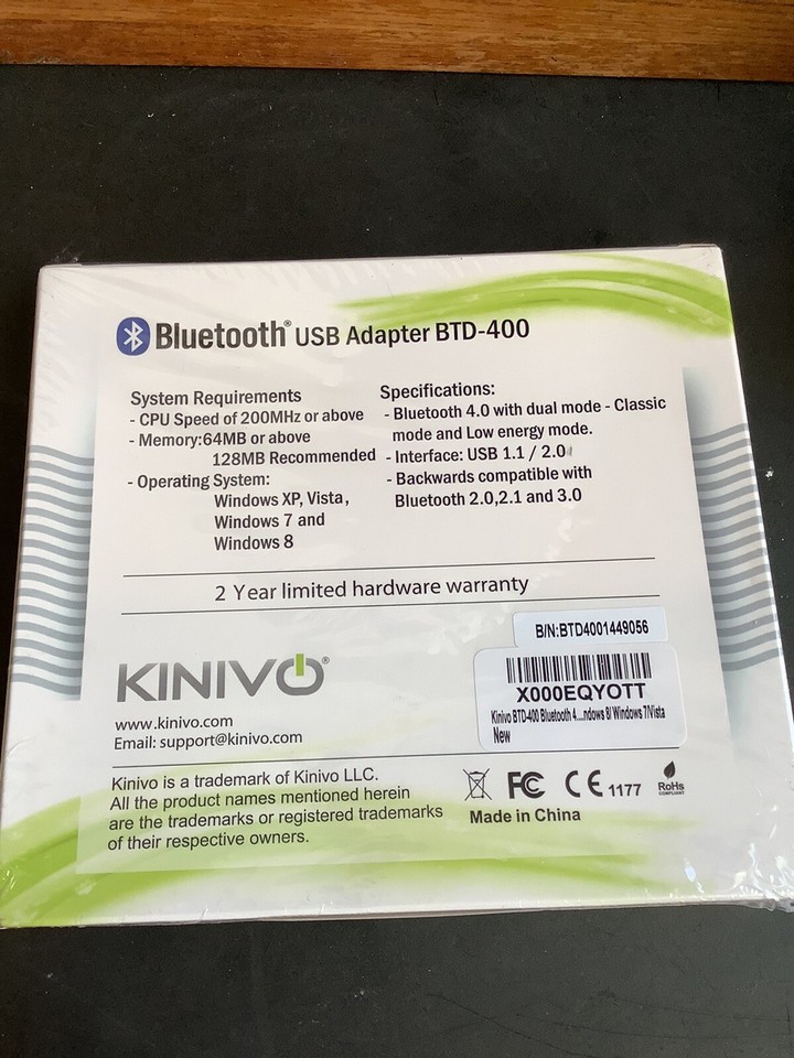 Fonctionne avec tous les modèles Raspberry Pi alimentés par Raspbian Btd-400 adaptateur usb bluetooth, Version 4.0) • Lire en ligne ou télécharger en PDF • Kinivo BTD-400 Bluetooth 4.0 USB adapter FR Manuel d'utilisation Ajoute la compatibilité à Bluetooth sur les versions 32 bits et 64 bits de Windows 10 / Windows 8., 1 / Windows 8 / Windows 7 / Vista / XP, Raspberry Pi, Mac 10., 3., 9 ou plus récent Linux sans Bluetooth intégrée. Connexion avec des appareils dotés de Bluetooth comme des écouteurs, casques, téléphones portables, imprimantes, claviers, souris et plus. Pile Bluetooth de Broadcom disponible pour Windows 7, Vista, XP. Broadcom Corporation Kinivo Bluetooth 4.0 USB Adapter BTD-400 Windows XP, Vista, 7, 8 Compatible Windows 10 8 7 Xp Ajoute la compatibilité à Bluetooth 3., 0 (faible énergie) sur Windows 8 et plus Clé USB extrêmement compacte. Installation prête à l'emploi sur Windows 10, 8., 1, 8 avec une pile Bluetooth par défaut. Entièrement compatible avec l'ancien équipement Bluetooth. Garantie Kinivo à vie limitée de 2 ans Portée sans fil de jusqu'à dix mètres. Kinivo BTD-400 Bluetooth 4.0 Adaptador USB de Baja energía – Funciona con Windows 10/8.1/8