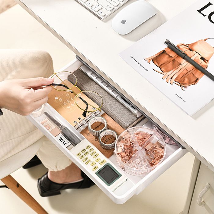 Facile à installer : ce tiroir sous le bureau dispose de quatre bandes adhésives solides, qui sont faciles à fixer fermement sur une surface propre sans tomber. Convient pour un usage quotidien. Adhésif sous le tiroir de bureau : design créatif de tiroir, pratique et lisse à ouvrir, ne tombe pas facilement, parfait pour la maison, le bureau, la cuisine et plus encore, rangement sous le bureau À propos de cet article Matériau de haute qualité : le tiroir de bureau est fabriqué en plastique ABS sans plomb, sûr, durable et respectueux de l'environnement. Convient pour un usage quotidien. Taille du produit : la taille du tiroir de bureau est de 20 x 17 x 7,2 cm. Il peut stocker divers articles, tels que des téléphones, des livres, des stylos, de la vaisselle et d'autres petits... Vous pouvez choisir un panneau lisse, veuillez utiliser un sèche-cheveux pour chauffer la bande avant de la fixer. WANTOUTH Lot de 2 boîtes à stylos à tiroirs cachées sous le bureau - Plateau à crayons - Tiroir Utilisation du produit : vous pouvez l'utiliser non seulement pour le rangement de bureau, mais aussi pour les cuisines, les écoles, les chambres, etc. Obtenez plus d'espace d'utilisation. Tiroir Collant Caché Pour Bureau Tiroir De Rangement Sous Le Bureau, Tiroir Autocollant, Boîte Boîte Rangement Bureau Taille du produit : la taille du tiroir de bureau est de 20 x 17 x 7,2 cm. 1., Grand tiroir 2., Petit tiroir * Deux tailles sont disponibles pour répondre à vos besoins de stockage. Matériau de haute qualité : le tiroir de bureau est fabriqué en plastique ABS sans plomb, sûr, durable et respectueux de l'environnement.