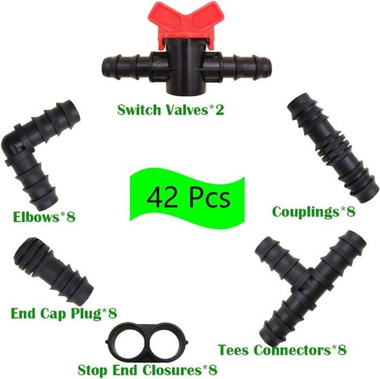 Lot de 10 raccords d'irrigation pour tuyau d'arrosage de 6,3 mm à 6,3 Kit Connecteurs D'irrigation Goutte À Goutte 280 Pièces Connecteur à Barbelés Pour Irrigation Goutte à Goutte 1 4 Pouce Kit De Raccords Pour Pot De Fleur Jardin Et Pelouse Barbelé Droit Barbelé Simple Way Coudée Bouchon D Extrémité Connecteur 4 Voies G 601099574574666 Kit de 280 connecteurs barbelés pour irrigation goutte à goutte, connecteurs barbelés 6,35 mm Il est possible de profiter d’une livraison en toute autonomie et sécurité. Des casiers sécurisés sont à disposition, pour la plupart ouverts 24h/24 et 7j/7, situés dans les endroits publics et centres commerciaux
