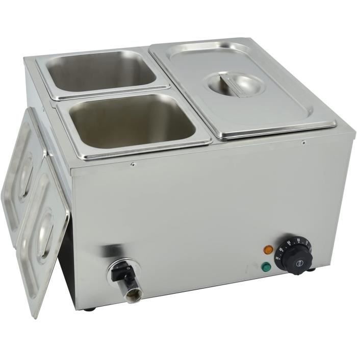Haute densité, pas de fuite, atténuer l'augmentation soudaine de la température 17 Stories Chauffe-plat commercial à 4 plateaux, table à vapeur Le bain marie électrique TAIMIKO 1500W est conçu pour répondre à ces exigences. Grâce à sa construction en acier inoxydable et ses casseroles amovibles, il garantit une utilisation professionnelle simple et fiable Inox de qualité alimentaire Construit en acier inoxydable de qualité alimentaire,résistant à l'extrusion et à la déformation. 【Interchangeable & Compartiment Design】Notre base de chauffe-aliments buffet qui fonctionne avec des compartiments de taille standard de profondeur de toutes tailles, interchangeables pour convenir à toutes les occasions Tube de Chauffage en U Efficace Chauffage rapide et uniforme,le tube chauffant est en U en inox. Acier Inoxydable de Qualité Alimentaire 【Design innovant】Renforcement du rivet,résistant à l'extrusion et à la déformation;Robinet de vidange en acier inoxydable,drainage facile;vous pouvez en utiliser pour la fonte du lait ou de la crème, chocolat, confiture, savons artisanaux, cire de beauté., Convient à diverses occasions Plage de température : 30-85 °C. équipement Cuisine Pour Maintien Au Chaud Plats TAIMIKO Bain Marie En INOX Chauffe-Plat électrique Professionnel 2x1/2 Bain-marie 6 Bacs GN 1/3 Surface de chauffage est plus grande. TAIIKO Friteuse électrique coerciale unique réservoir en acier... D'aspect magnifique et facile à nettoyer et extrêmement durable, c'est vraiment un choix idéal. Sonde de contrôle de température intégrée,le chauffage et l'arrêt pour maintenir une température constante Avec 6 casseroles et 6 couvercles Design innovant Renforcement du rivet,résistant à l'extrusion et à la déformation. Le chauffage de l'eau permet une fonte uniforme et un changement de température progressif. 【Résistant à l'Acide Alcal Acier Matériau】 En acier inoxydable de qualité alimentaire,déformation anti-compression et anti-chute,résistant à la corrosion et très facile à nettoyer. Dessert un grand nombre de personnes en même temps,convient pour une variété de plats, utilisés dans les cuisines, les restaurants, les hôtels ou les prestataires de services de restauration Contrôle de la température,Puissance 1500W,vous pouvez également utiliser le chauffe-plat pour sa fonction réchauffe-plat, Circulation à haute température.