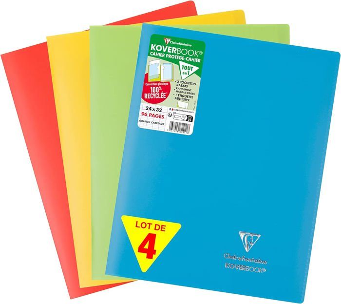 1 Index Adhésif Blumie Shop Pochette range document en carton - Bricolage Tête à Modeler, pochette rangement Promo Cahiers Koverbook chez Plein ciel 140 pages grands carreaux seyes Format A4 : 24 x 32 cm Papier velouté 90g/m2 Koverbook - Fabriqué en France 1 Index Adhésif Blumie Shop Cahiers 2 en 1 : Cahier protège cahier avec 2 pochettes à rabats. Les Cahiers Koverbook ont été créés pour un usage scolaire (même si rien n'empêche de s'en servir au bureau par exemple !). Comme il a été pensé spécialement pour l'école, le Cahier Koverbook est devenu un des grands classiques des Fournitures Scolaires Koverbook - Fabriqué en France 9 couleurs possibles, lot de 4 cahiers coloris différents garantis parmi les stocks disponibles. Cahier 24x32 Grand Carreaux 140 Pages LOT DE 5 CAHIERS POLYPRO À INDEX 4 En 1 - 24x32 Cm - 140 Pages Séyès Cahier Koverbook Avec Rabat