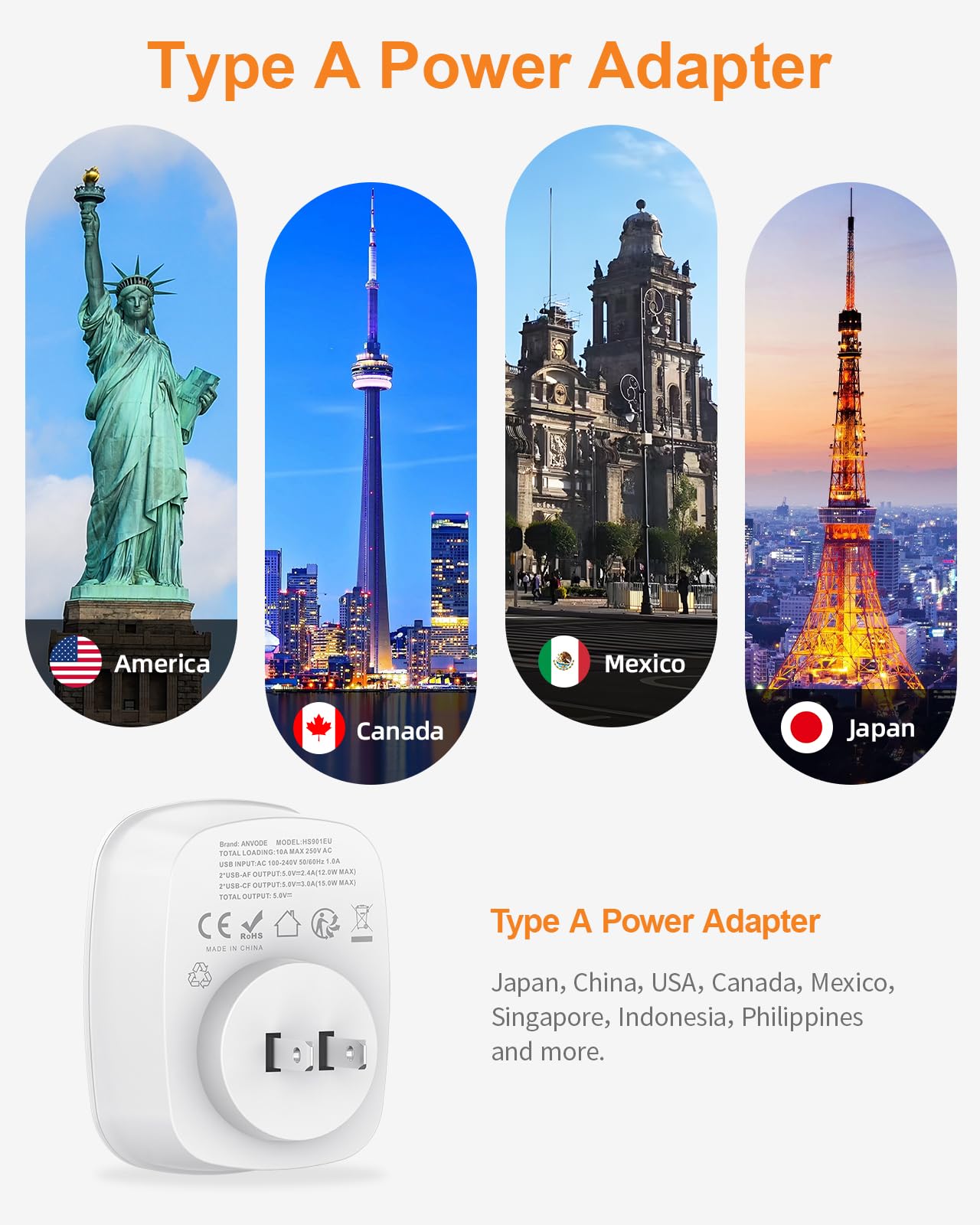 🛫【Qualité exceptionnelle en tant que compagnon de voyage】Cet adaptateur de prise Chine est composé de composants de haute qualité, d'une structure multi-isolée, d'une protection enfant, etc. Multiprise Adaptateur Japon, Adaptateur de Prise USA vers UE avec 3 Prises et 4 Ports USB (2 USB-C), Prise de Voyage Type A avec câble 1,5m pour UE vers Amérique/Japon/Canada/Mexique Adaptateur Denlane Japon, adaptateur 5 en 1 avec 1 prise secteur, 2 prises USB-C et 2 prises USB-A pour les États-Unis, le Canada, la Chine, le Japon, la Thaïlande, le Mexique,les Philippines - Type A Avec protection contre les surtensions, les courts-circuits, le contrôle de température, vous pouvez l'utiliser en toute tranquillité. Veuillez vérifier avant utilisation si votre appareil est double tension ou un appareil global avec une tension d'entrée de 100V-250V, en particulier votre sèche-cheveux/fer à lisser/brosse à dents électrique/rasoir, etc. 🛫【Remarque】Cet adaptateur de voyage Type A n'est pas un convertisseur de tension ! Convient pour les appareils photo, téléphones portables, tablettes, ordinateurs portables, batteries externes, écouteurs, consoles de jeux, etc. Adaptateur Prise Usa, Americaine Adaptateur De Voyage 5 En 1 Avec 2 Usb Aucun besoin d'adaptateurs ou de multiprises supplémentaires, économisant beaucoup d'espace dans vos bagages ! Les 2 ports USB-C peuvent charger jusqu'à 3A. Convient pour la chambre, la salle de bain, la cuisine, l'hôtel, les résidences étudiantes, etc. 4 x Adaptateur Prise USA/Canada/Japon/Mexique/Thailande - Très Utile pour Voyager - Adaptateur Facile A Transporter - Design Compact et Léger (Blanc). Choix... Prise Secteur Voyage Multi-pays Adaptateur De Prise Japonaise Avec 2 USB C Et 2 USB A, 5 En 1 - Type A Pour Japon, États-Unis, Thaïlande, Chine, Canada, Allemagne Adaptateur Type A USA Japon 🛫【Adaptateur de voyage Type A】Les fiches Denlane pour le Japon sont compatibles avec de nombreux pays : comme le Brésil, la Chine, la République dominicaine, Haïti, le Japon, la Jamaïque, le Canada, Cuba, la Colombie, le Mexique, les Philippines, le Panama, la Thaïlande, les États-Unis, le Venezuela, etc.