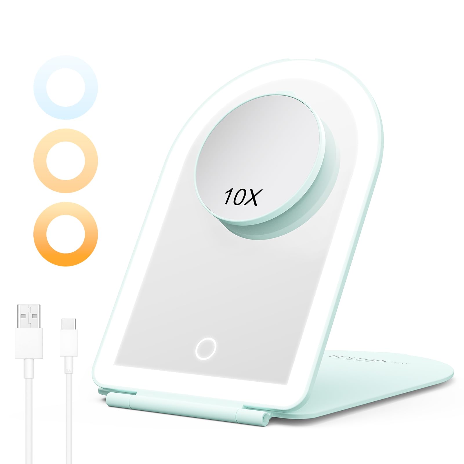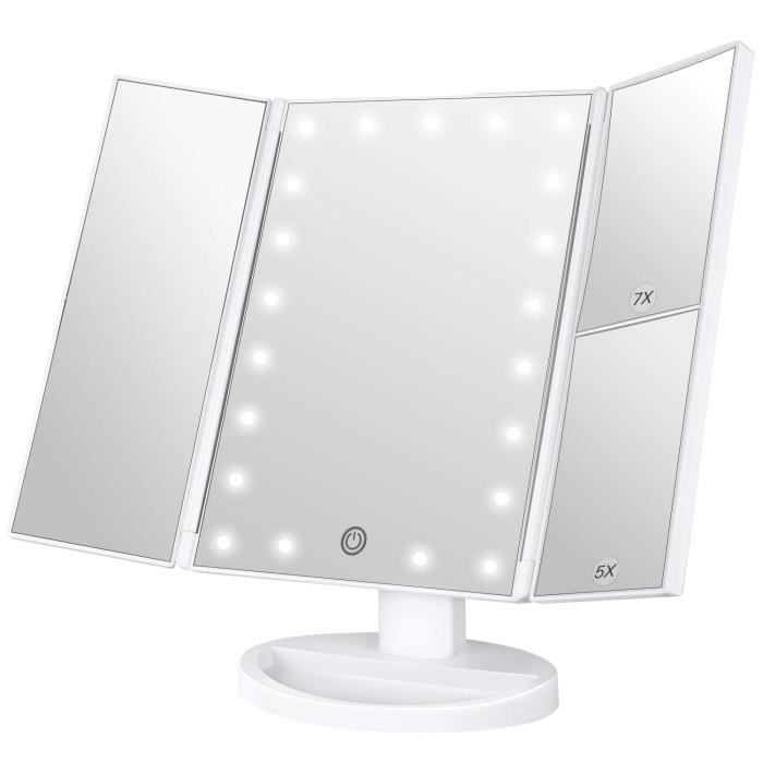 Ultra-Portable & Idéal pour les Voyages: Se replie à plat pour un format compact de 20x13cm (8x5), léger à seulement 320g. Votre miroir de maquillage LED s'adapte à tous les besoins. Le côté grossissant 10x révèle les pores, les cils, les sourcils et les poils pour un eyeliner parfait, l'épilation des sourcils, les vérifications de la peau et le rasage de la barbe. Idée Cadeau Parfaite: Adoré par les amateurs de maquillage, les voyageurs et les passionnés de soins de la peau! Miroir Grossissant 10X: Voyez chaque détail à la perfection ! GXU Miroir Grossissant 10X pour Maquillage, Miroir Lumineux LED, Rotation à 360°, Ecran Tactile Réglable à 180° & Stable: Base rabattable robuste offrant une stabilité sur n'importe quel bureau ou plan de toilette. Ajustez librement l'angle du miroir. Le côté grossissant 10x révèle les pores, les cils, les sourcils et les poils pour un eyeliner parfait, l'épilation des sourcils, les vérifications de la peau et le rasage de la barbe. Obtenez une précision professionnelle Miroir Tactile 3 Couleurs USB BESTOPE PRO Miroir Maquillage Lumineux Portable Avec Grossissant Miroir Voyage Lumière Réglable Obtenez une précision professionnelle. Luminosité Réglable & Mémoire: Maintenez enfoncé pour atténuer ou augmenter en douceur la luminosité de votre miroir éclairé. Portable et compact]Ce miroir de maquillage occupe moins d'un demi-pied carré d'espace, parfait pour n'importe quelle chambre, salle de bain ou voyage. Seules 3 piles sèches AAA (non incluses) sont nécessaires pour faire fonctionner la lampe du miroir Il mémorise automatiquement votre dernier réglage - allumez, et c'est parfait instantanément ! Le miroir de maquillage de voyage ultime. Profitez de 2,5 à 15 heures d'éclairage sans fil (selon la luminosité) - idéal pour les voyages ou les routines quotidiennes. Un cadeau idéal pour elle à l'occasion d'un anniversaire, de Noël ou de la Fête des Mères.