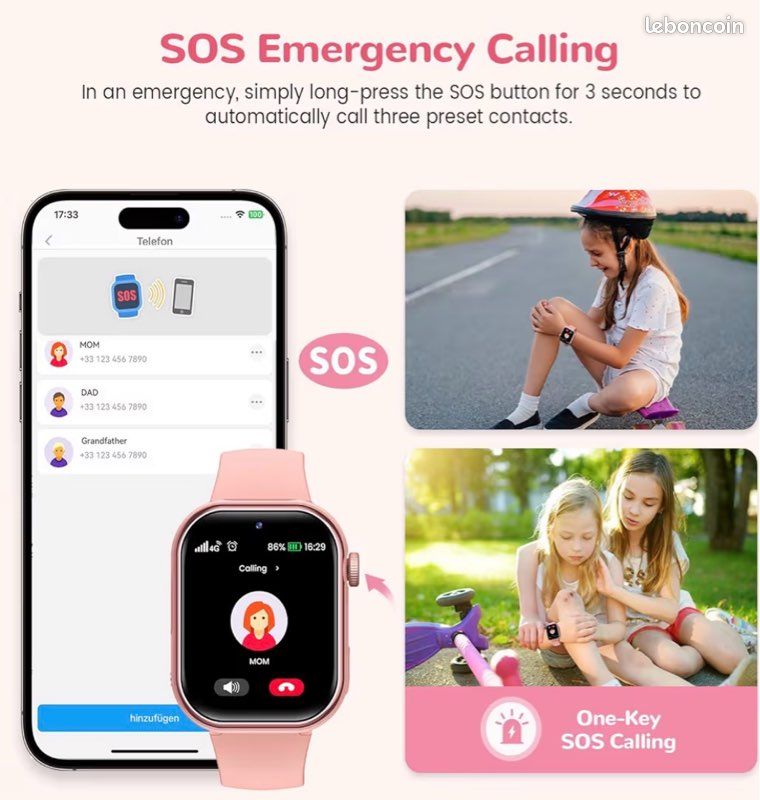【Appel D'urgence SOS en Un Clic】En cas d'urgence, l'enfant peut appuyer pendant 3 secondes sur le bouton SOS : la 4G montre connectée enfant compose automatiquement et successivement les 3 contacts d'urgence prédéfinis jusqu'à ce que l'appel soit répondu, garantissant une assistance immédiate. La montre connectée enfant supporte également les appels vocaux, les messages audio et la messagerie texte. 【Triple Positionnement, Protection Précise】Cette montre enfant intègre un système de positionnement intelligent triple GPS, LBS et Wi-Fi, permettant de localiser précisément la position de votre enfant en temps réel. C'est le cadeau idéal pour l'anniversaire de votre enfant, Noël ou la rentrée scolaire, et elle l'accompagnera à chaque instant de sa croissance ! Cette fonction offre aux enfants une meilleure concentration durant les études, et aux parents une tranquillité d'esprit accrue. APPIE Montre Intelligente pour Enfants 3-8 Ans Filles Montre Écran Tactile pour Tout-Petits Double Caméra HD Montre Rose pour Enfants avec Jeux Cadeaux d'Anniversaire pour Filles de 5-12 Ans Jouets Éducatifs Rose Cette fonction offre aux enfants une sécurité accrue lors de leurs explorations, et aux parents une sérénité renforcée. Elle intègre également de nombreuses fonctions pratiques : réveil, lampe de poche, calculatrice, chronomètre, podomètre, jeux, appareil photo, album photo et suivi du sommeil. Cette montre connectée enfant GPS permet également de définir plusieurs zones de sécurité (comme la maison et l'école) via l'application. Pendant ces périodes, la montre connectée enfant avec carte sim bloque automatiquement les jeux, messages et appels, n'affichant que l'heure pour aider l'enfant à se concentrer sur ses études. Aoekne La montre intelligente 4G pour enfants avec GPS et téléphone est une montre intelligente tout-en-un pour enfants qui comprend : réseau 4G, GPS, appel vidéo, appel vocal, WhatsApp, contacts, photos, albums, vidéos, historique de l'emplacement, zones sécurisées, étanchéité IP67 réveil, calculatrice, mode classe, chronomètre... Votre enfant peut discuter face-à-face avec sa famille à tout moment et en tout lieu, partageant les moments joyeux de son quotidien. Des notifications immédiates alertent les parents dès que leur enfant entre ou sort d'une zone désignée, pour une tranquillité d'esprit optimale. 【Mode École pour Une Concentration Optimale】Les parents peuvent programmer jusqu'à quatre plages horaires distinctes dans le Mode Cours. Vous pouvez vérifier sa position à tout moment depuis votre téléphone, pour une sécurité optimale. La montre connectée enfant supporte également les appels vocaux, les messages audio et la messagerie texte. Ces multiples modes de communication renforcent les liens familiaux, permettant aux parents de suivre les activités de leur enfant et d'accompagner chaque étape de sa croissance Montre étanche Junior Montre Connectée Enfant Smart Kids Stellar - 4G, Appels Vidéo, GPS, étanche - Garantie 2 Ans - Rose Montre Connectée Enfant Avec Carte Sim Les parents peuvent également configurer une liste de contacts de confiance via l'application, pour bloquer les appels inconnus et filtrer complètement toute sollicitation indésirable.