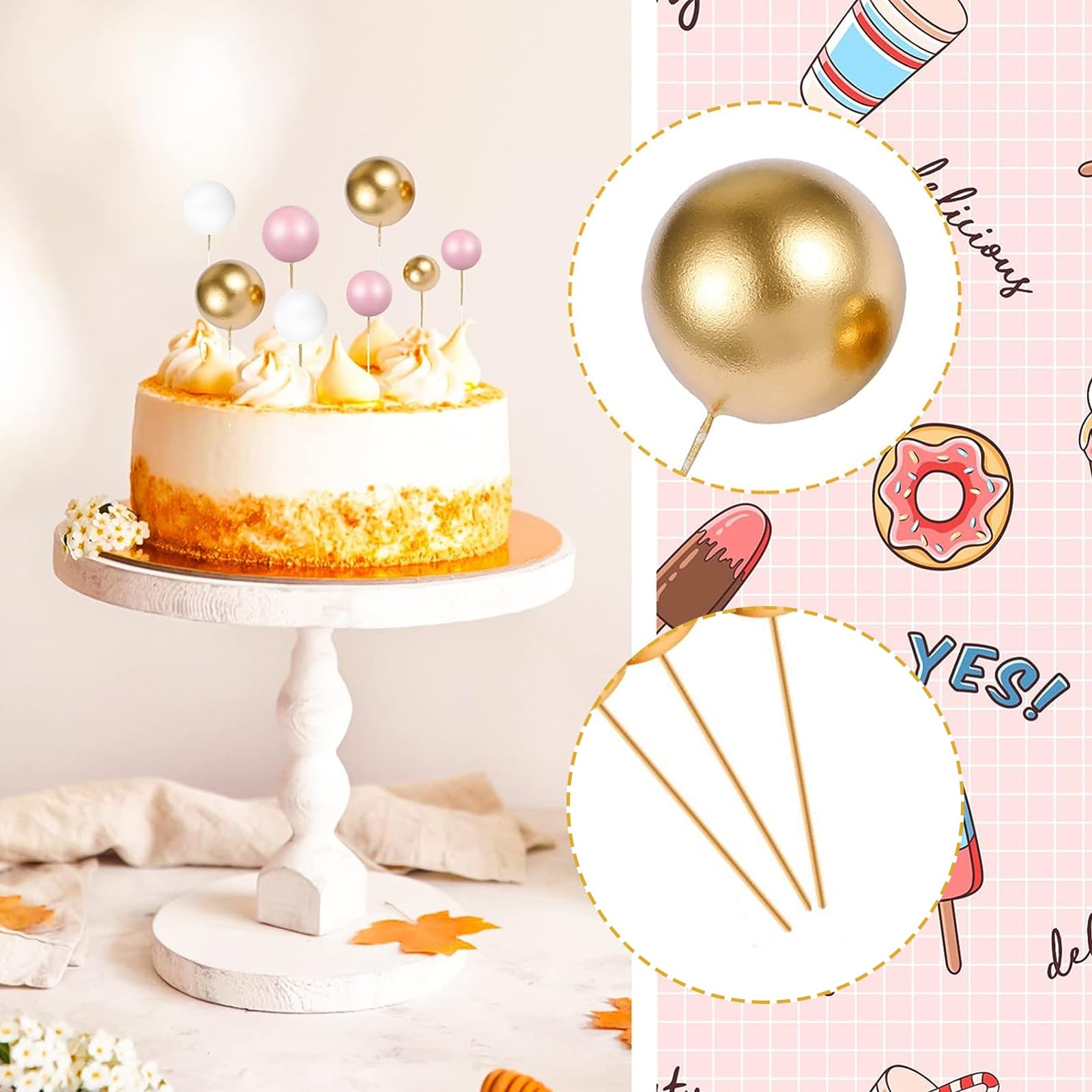 Maison - Découvrez notre offre 46 Cupcakes Toppers Balle Gâteau Topper,Mini Boule Decoration Gateau D'anniversaire,Topper de Gâteau de Ballon,Décorations 🧁【DIY-Gâteaux】 : Décorez votre gâteau d'anniversaire ou de mariage avec ces belles boules de décorationet soyez créatif, Ces toppers de boules d'anniversaire rendront votre gâteau d'anniversaire plus brillant. Toppers Boules Gâteau MsTeco Balle Gâteau Topper Mini Topper De Gâteau Ballon 108 Pièces Topper à Gâteau D'Insert DIY Mini Topper De Gâteau Cupcakes Toppers,pour Décoration De Gâteau Dessert(Blanc, Rose, Or Décoration Pâtisserie Multicolore Nous proposons 3 tailles de boules de décoration de gâteau, vous pouvez utiliser les boules de décoration dans un ordre différent en fonction du style de votre gâteau. 🎉【Matériau de haute qualité】 : Les boules de décoration de gâteau sont fabriquées en mousse de haute qualité et en fil métallique, non toxique, insipide, inoffensif, ne se décolore pas facilement, très durable, peut être utilisé à plusieurs reprises après avoir été essuyé. 🎀【Paquet inclus 】 : vous recevrez 45 boules de gâteau de différentes tailles et couleurs., Rose (2 cm x 5, 2., 5 cm x 5 , 3 cm x 5),Blanc(2 cm x 5, 2., 5 cm x 5 , 3 cm x 5),Or (2 cm x 5, 2., 5 cm x 5 , 3 cm x 5) Unleash your child's creativity and personalize their birthday celebration with custom cake toppers in Saim Pasion style 30 PièCes Mini Cupcakes Toppers Ballons GâTeau Topper Ballon Diy Cake peuvent être utilisées comme fêtes d'anniversaire, fêtes de bébé, mariages, soirées et anniversaires 🍓【Facile à utiliser】Chaque cake topper sticks peut être inséré directement dans le gâteau sans outil supplémentaire, La tige est un fil de fer flexible qui peut être plié en différentes formes selon les besoins. non toxique, inodore, inaltérable, aux couleurs vives et durable.